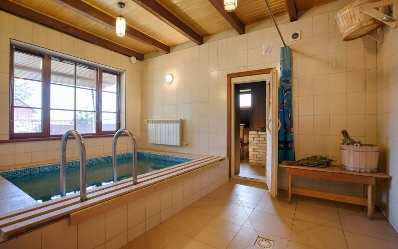 - помывочная с душем, ледяной обливалкой, бассейном с противотоком;