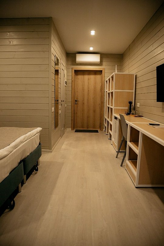 Однокомнатный номер с сауной. Расположен в непосредственной близости к ресторану. Отдельный вход.