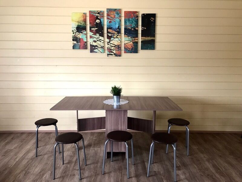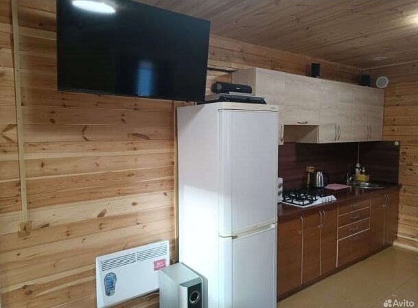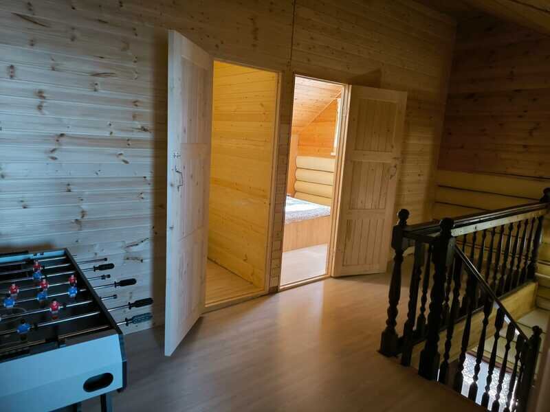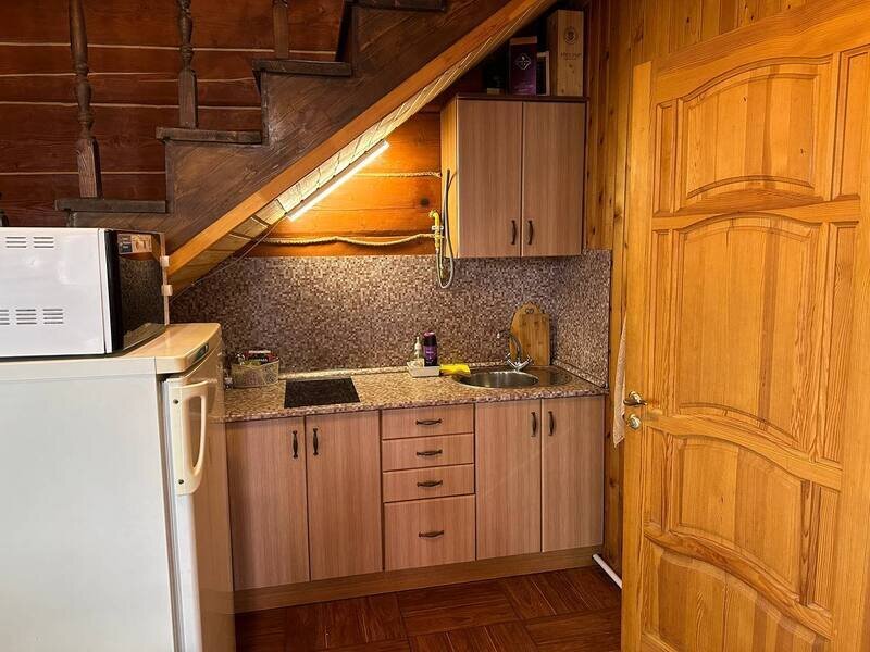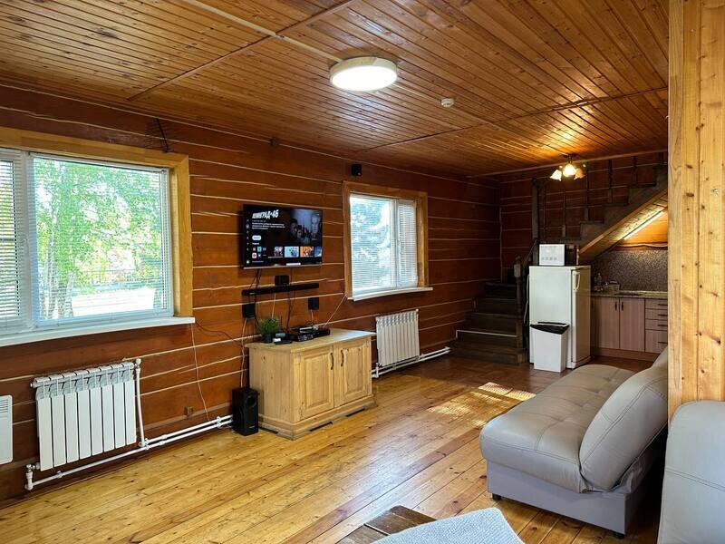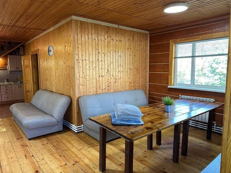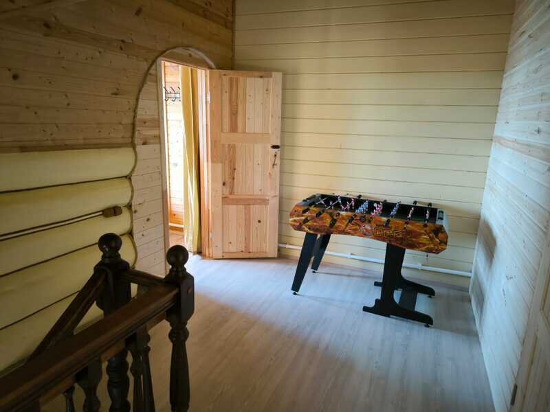 В доме есть телевизор, небольшая кухня со всем необходимым, спальни, ТВ, DVD, теплый пол, санузел с душем. При желании можно поставить караоке.