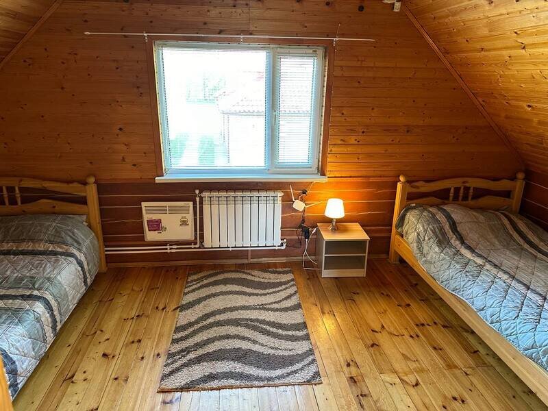 • На 2-ом этаже: три двуспальные кровати и шикарный вид на Псковское озеро.