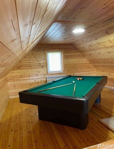 Дом на отдельно огороженной территории: парковка, баня, зона для барбекю, детская площадка, бильярдная комната.