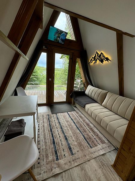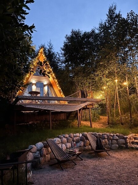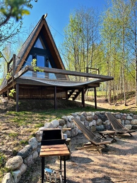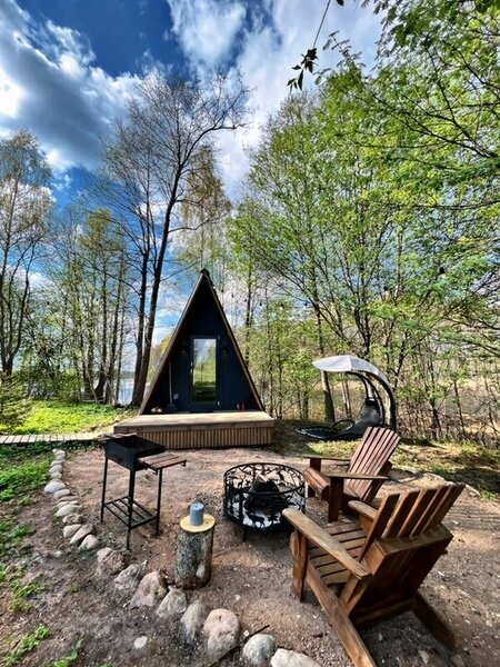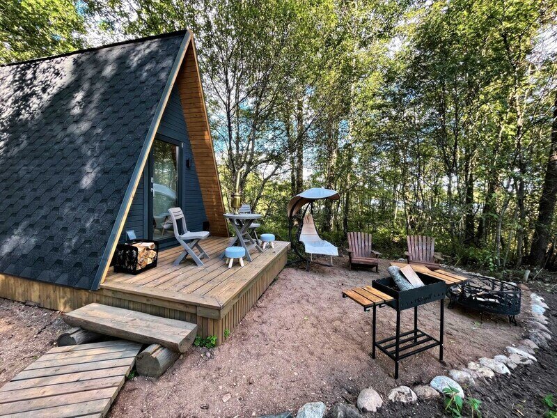 Дом в современном стиле A-frame вместимостью до 4-х человек.