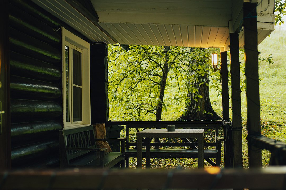 Уютный домик-шалаш на двоих с удобствами на улице.