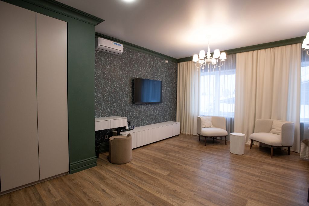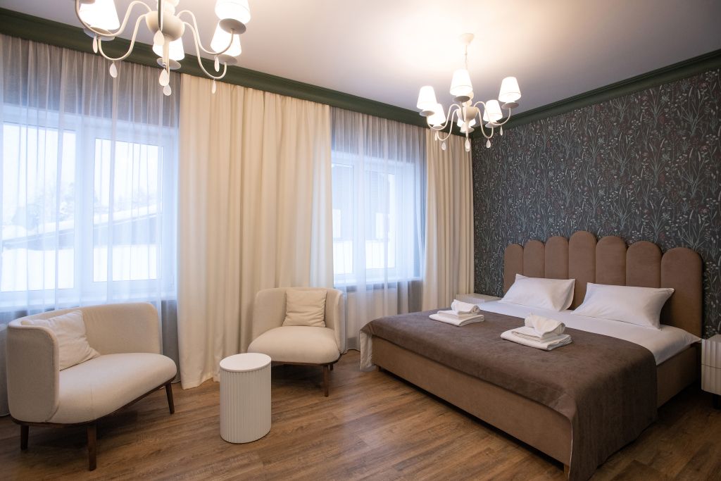 В номере гостей ждут телевизор и халат. Перечисленные услуги есть не во всех номерах.