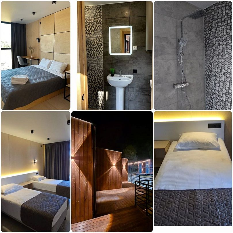 Домики имеют площадь 25 кв метров и включают все необходимые удобства для комфортного проживания. В домике есть спальня с кроватью размера “king-size”, ванная комната с душевой кабиной, а также небольшая кухня с холодильником, микроволновой печью и необходимым набором посуды. Дизайн интерьера выполнен в спокойных тонах, что создает атмосферу уюта и расслабления. Большие окна обеспечивают обилие естественного света и открывают вид на окружающую природу. У каждого домика имеется небольшая терраса, где можно наслаждаться утренним кофе, созерцать красоту природы и проводить время на свежем воздухе. Домик в парк-отеле Черехин представляет собой уютное и комфортабельное жилье, расположенное в живописном месте. Он идеально подходит для тех, кто хочет насладиться спокойствием и тишиной среди зеленых насаждений.Семейный номер четырехместный