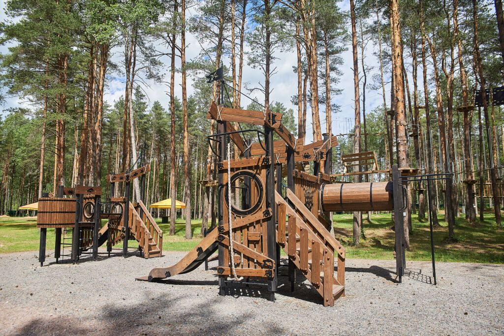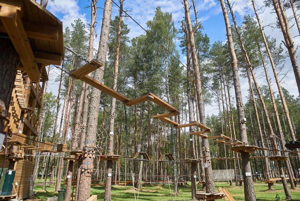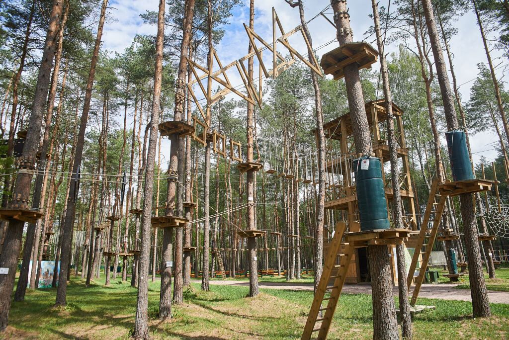 Веревочный парк «Раздолье» позволит весело провести время на свежем воздухе в компании близких. Это единый комплекс испытаний на деревьях на разной высоте: подвесные мосты, сетки, перелеты между деревьями.