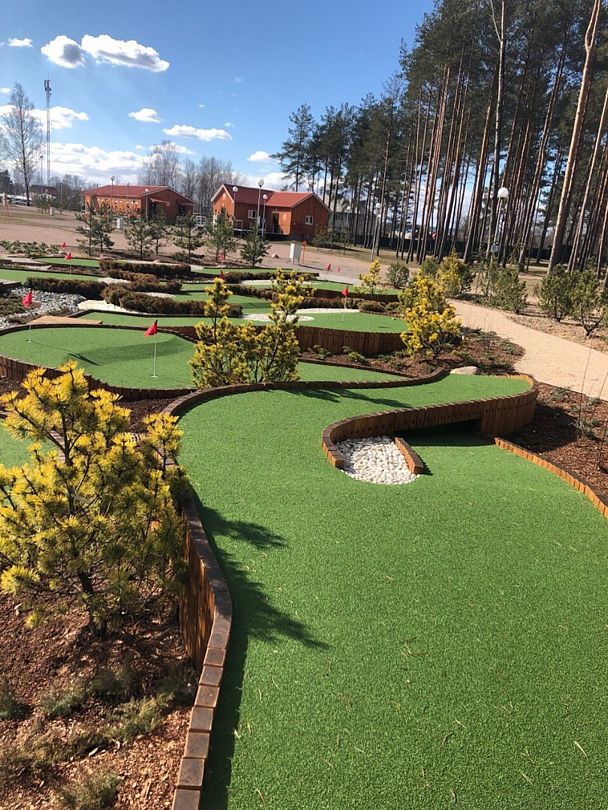 Уникальная площадка для игры в мини гольф. 9 полей с искусственным покрытием и детально продуманным ландшафтом.