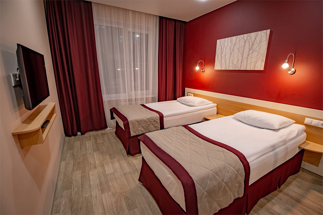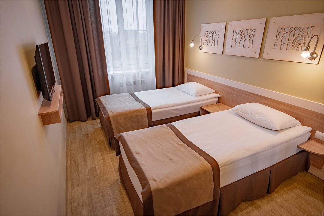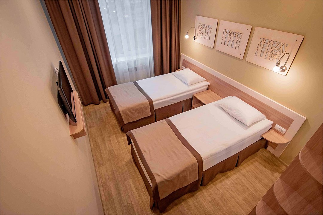 телевизор, Wi-Fi, светильник, фен, электронные замки, душевая кабина, санузел, банные полотенца, две односпальные кровати, шкаф для одежды, гардеробная, вешалки, багажная тумба, зеркало, унитаз, раковина, отопление, душ, кулер на этаже, вид во двор, стаканы, внутренний телефон, шкаф-купе, вид на лес, вешалки-плечики, зеркало в полный ростВ гостиничном номере