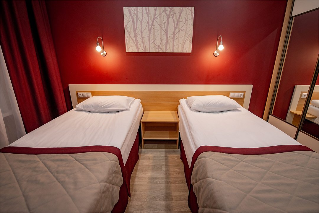 Стандартный двухместный номер с двумя односпальными кроватями, санузлом и прихожейУслуги и удобства