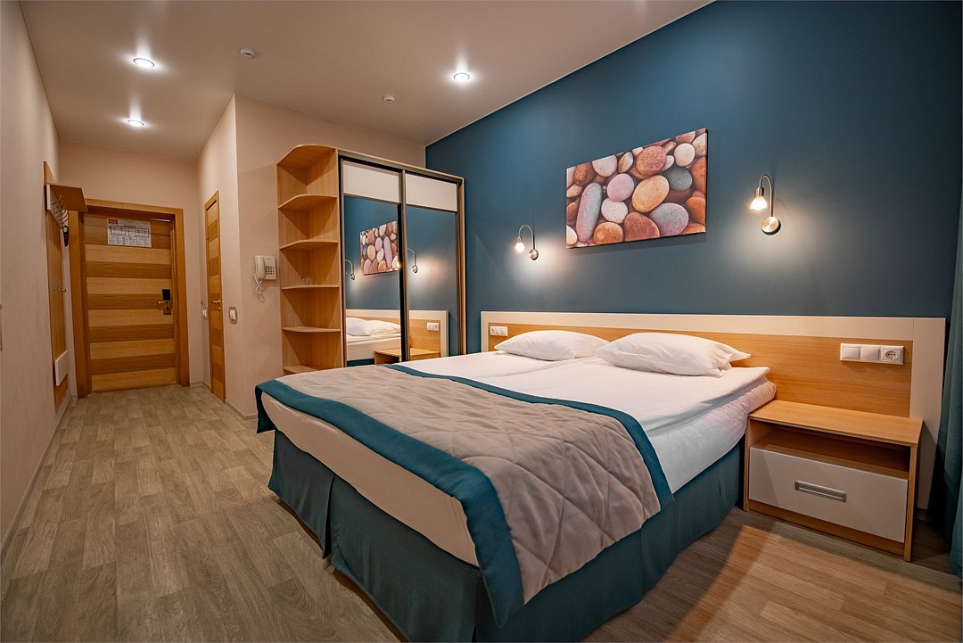 Стандартный двухместный номер с двуспальной кроватью, санузлом и прихожейУслуги и удобства
