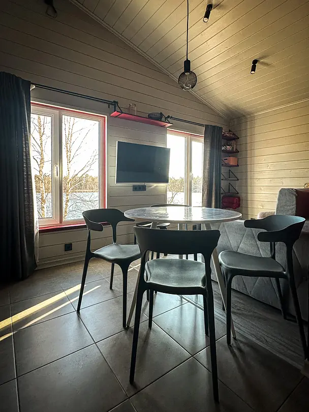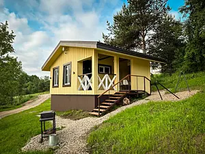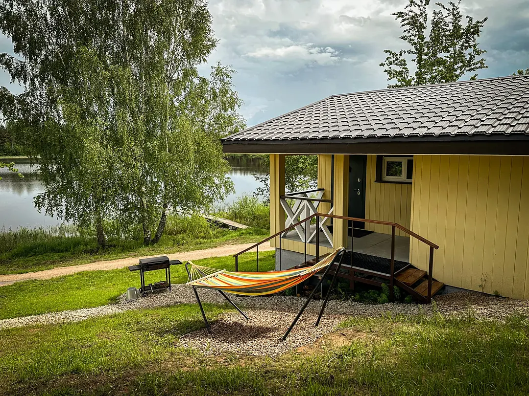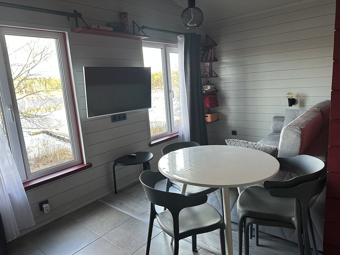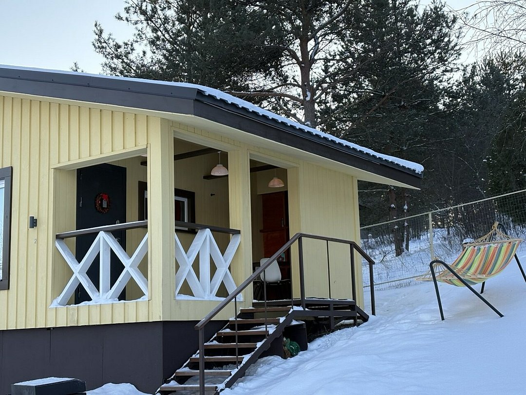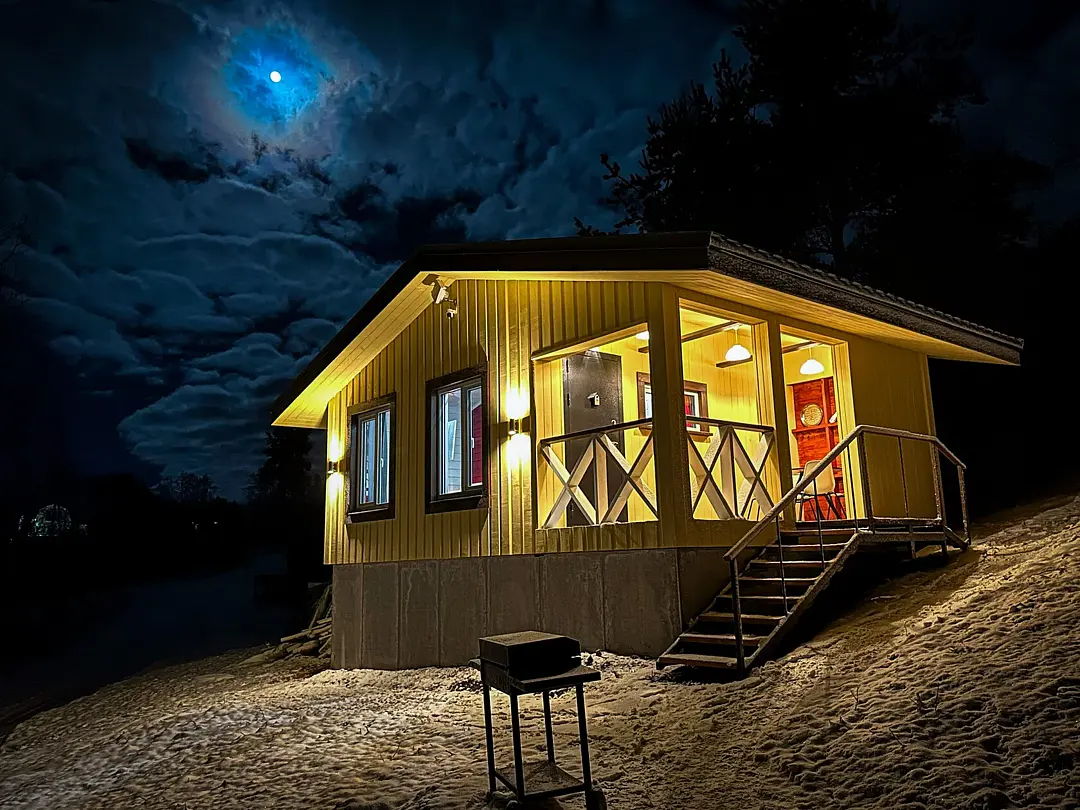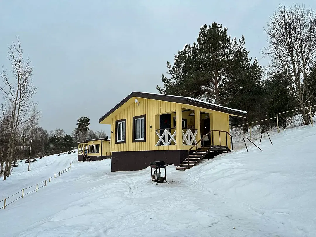Дом «Уютный берег» до четырех гостей, находится на склоне прямо на берегу озера. В доме одна спальня и кухня-гостиная с диваном.