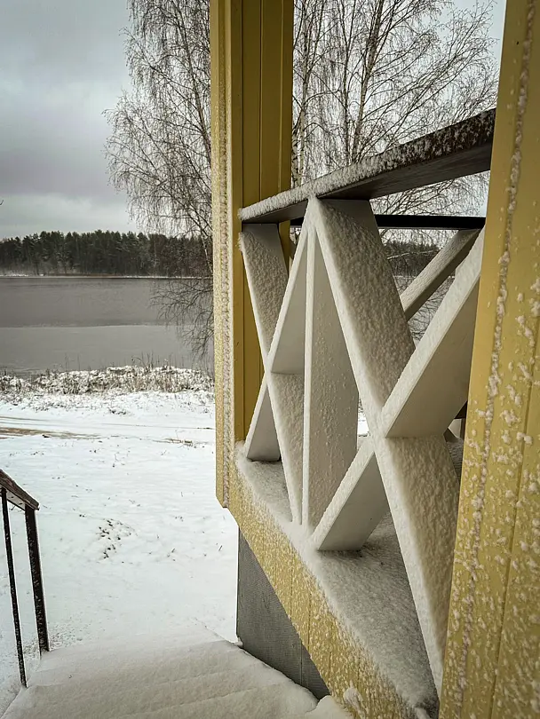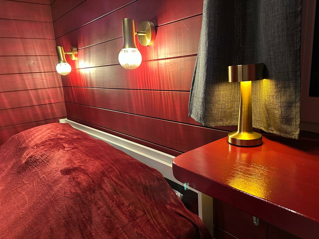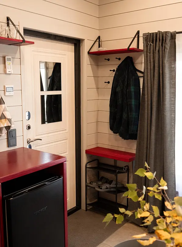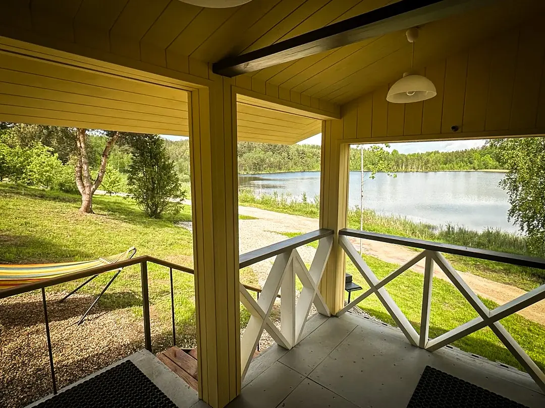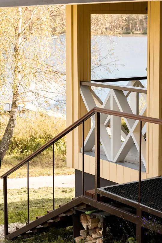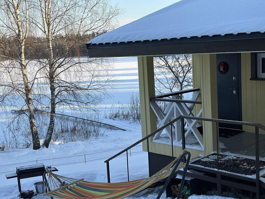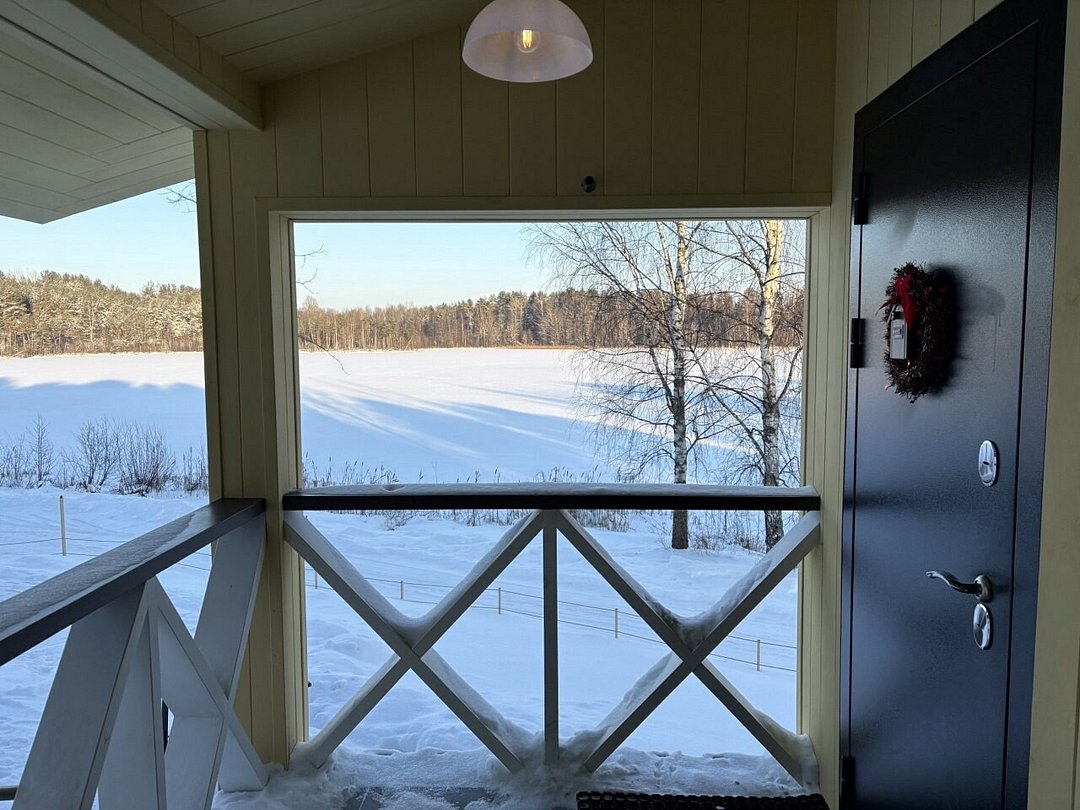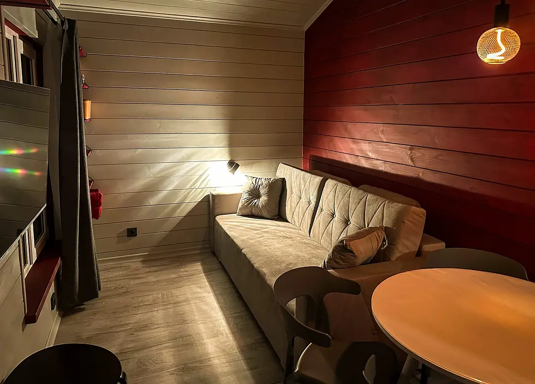 Дом «Уютный берег» до четырех гостей, находится на склоне прямо на берегу озера. В доме одна спальня и кухня-гостиная с диваном.