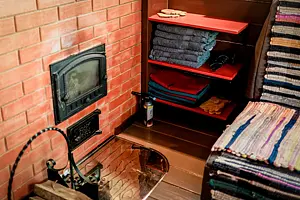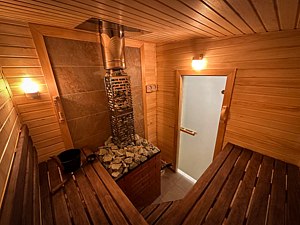 Инфраструктура: зона отдыха, душ, чай/угощенияРасположение: выход к озеруГости загородного дома могут насладиться баней на острове, откуда открывается живописный вид на озеро. Внутри расположена уютная комната отдыха с барным столом и мягким диваном, а парная оснащена каменкой из сибирского жадеита.