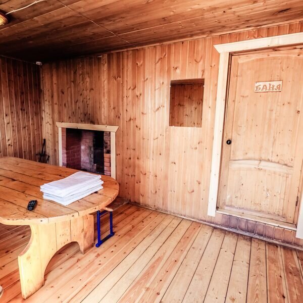 Инфраструктура: тапочки, простыни, шапочкиРасположение: выход к озеруБаня по-старорусски – настоящий эксклюзив, который вы можете найти на берегу Чудского озера. Она считается самой стерильной из всех видов бань, так как в ней нет дымохода и основной жар циркулирует по помещению, нагревая и дезинфицируя его. К тому же этот вид бани считается самым древним и самым полезным.