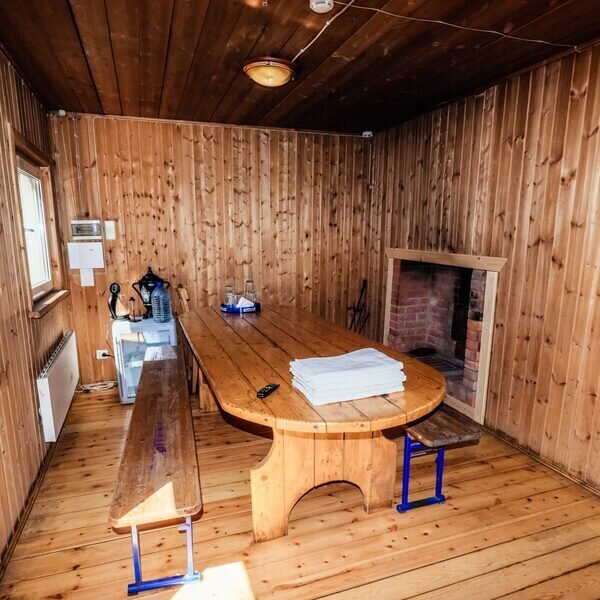 Инфраструктура: тапочки, простыни, шапочкиРасположение: выход к озеруБаня на дровах рассчитана на 6-8 человек. Оборудована финской дровяной печью Harvia и душевой кабиной. В уютной комнате отдыха вы найдете обеденный стол, телевизор, холодильник, самовар и настольные игры.