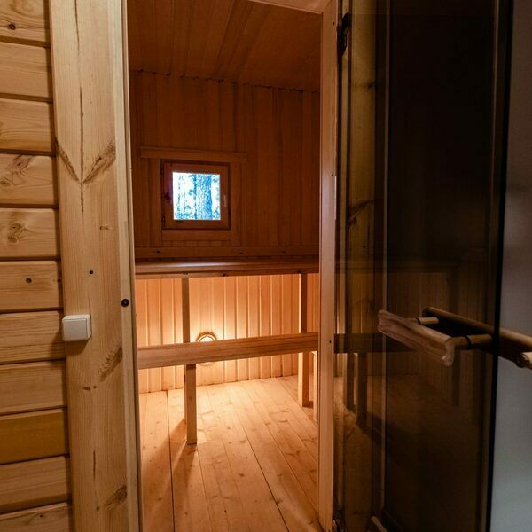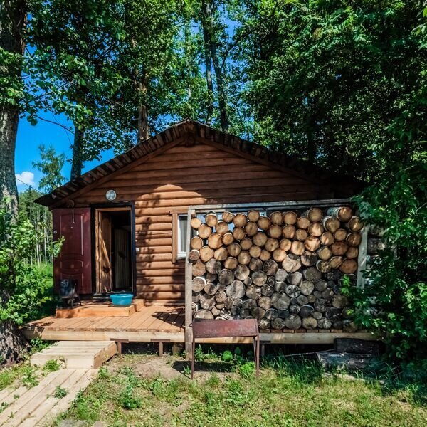Баня на дровах рассчитана на 6-8 человек. Оборудована финской дровяной печью Harvia и душевой кабиной. В уютной комнате отдыха вы найдете обеденный стол, телевизор, холодильник, самовар и настольные игры.