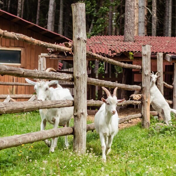 На территории есть минизоопарк. Здесь в зависимости от сезона обитают разные животные. Козочки, барашки, кабанчика, кролики, лошадки, утки, гуси, петушки и курочки, цыплята и цесарки.