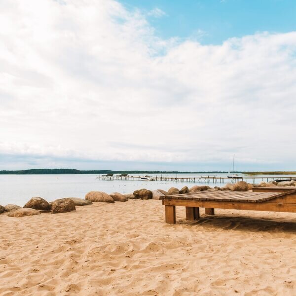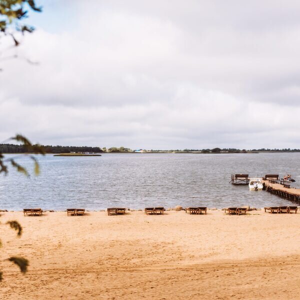 Песчаный пляж длиной 500 м. Комфортные лежаки, зонтики от солнца, пирсы для прыжков в воду, пляжный бар для тех, кто проголодался или хочет освежиться прохладным коктейлем.