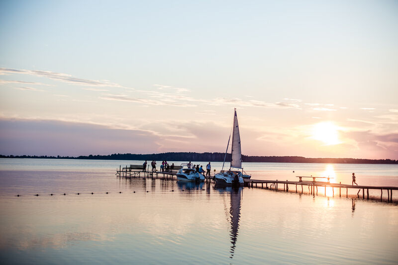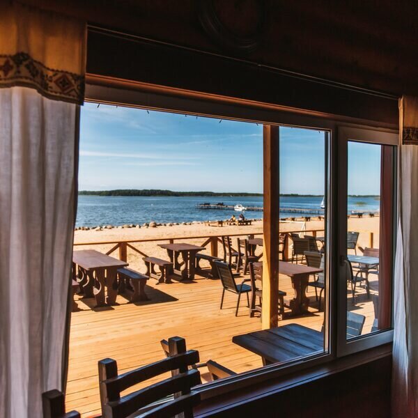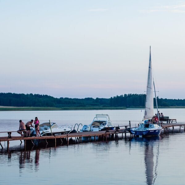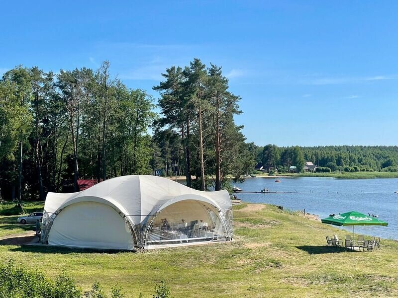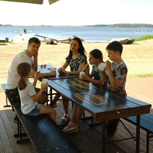 На территории имеется баня, спортивная и детская площадка, ресторан с домашней кухней и детским меню. Любители пеших прогулок могут прогуляться по берегу озера или в сосновом лесу. Для активного отдыха: прокат водного и наземного транспорта, катание на лошадях для взрослых и детей, игры в пейнтбол, волейбол и пляжный футбол.