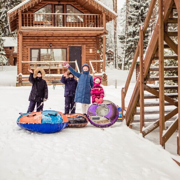 В зимнее время персонал организует для вас катание на лыжах, санях, снегоходах, тюбингах.
