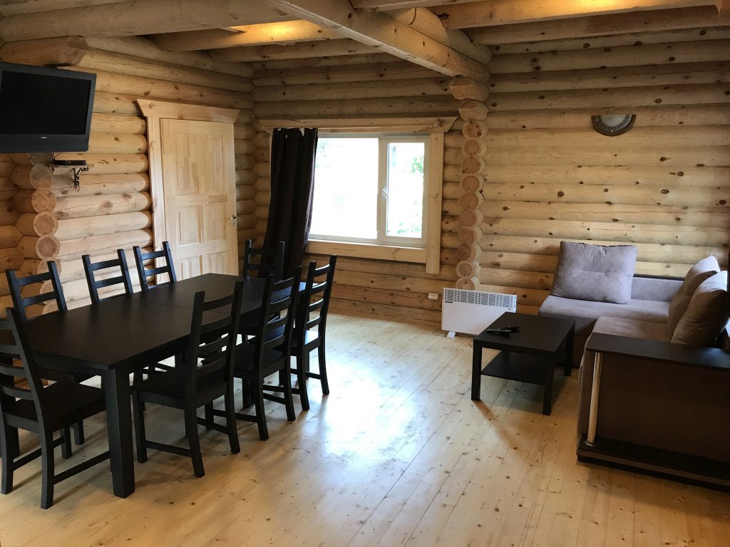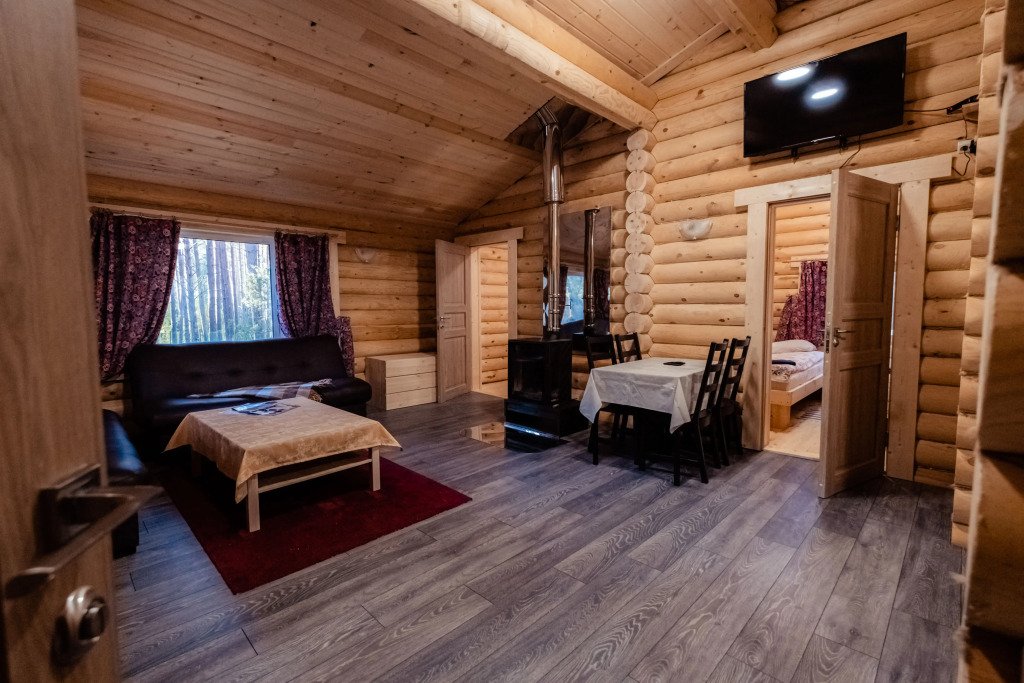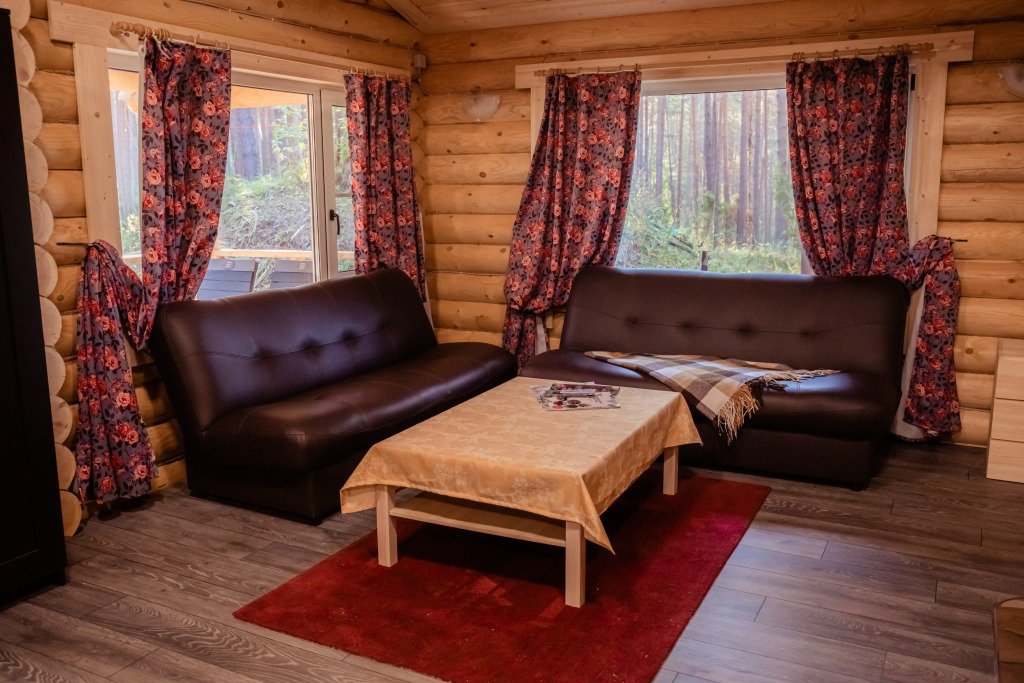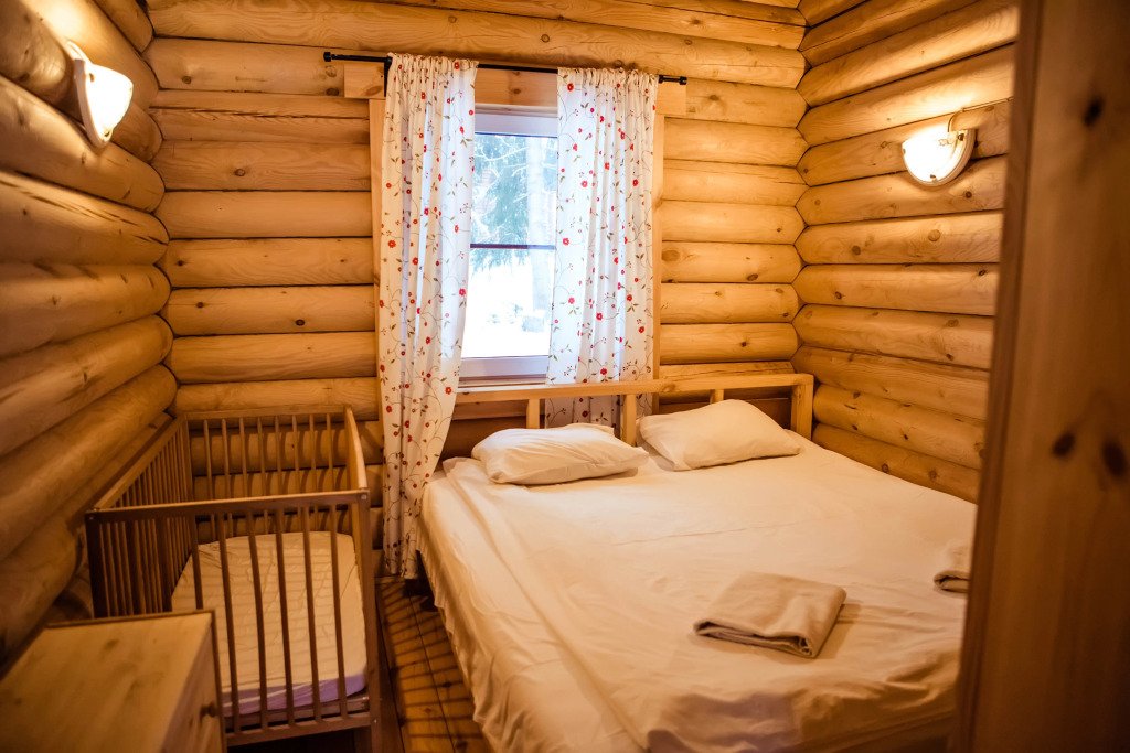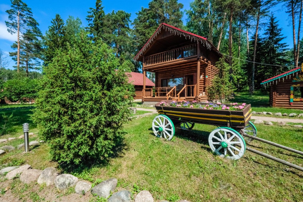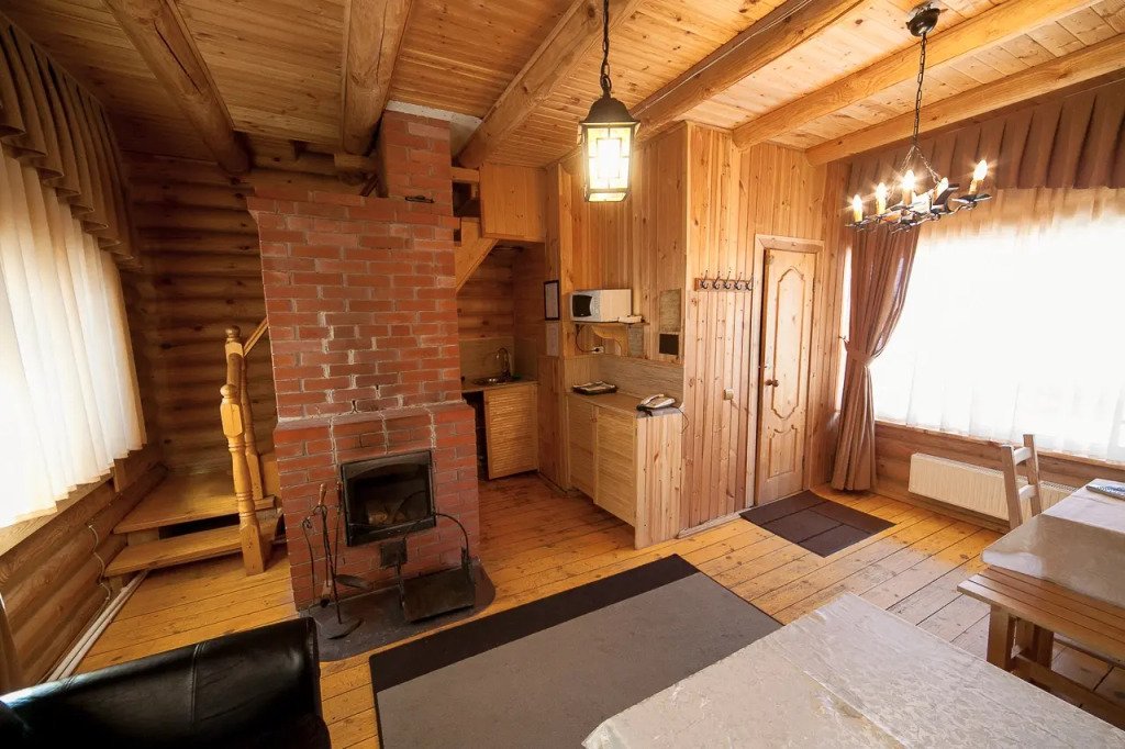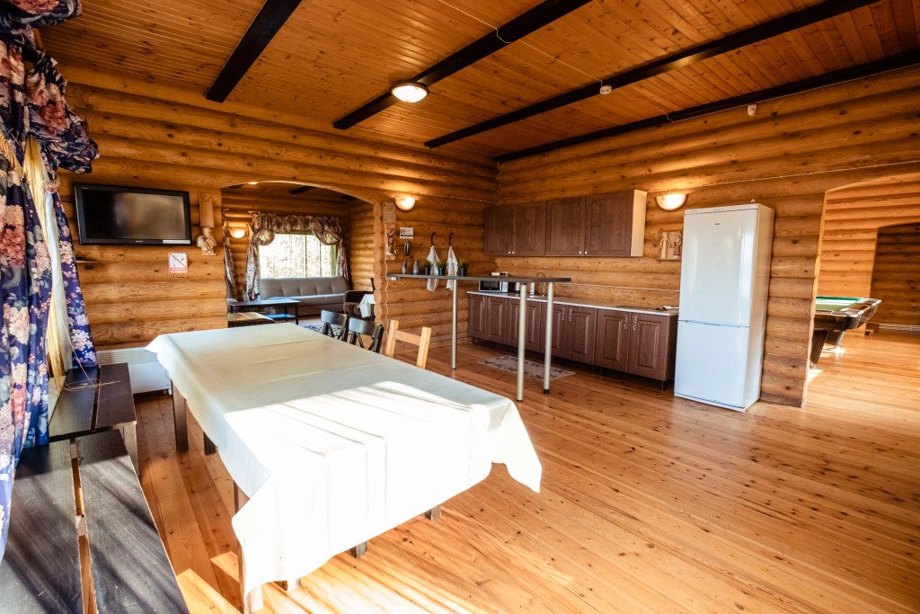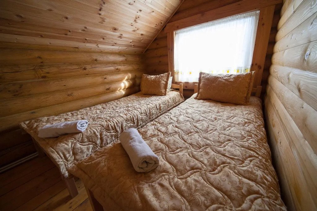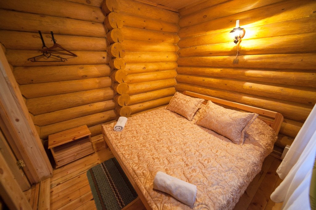 Для размещения гостей предложены деревянные коттеджи различной вместимости, гостиница, кемпинг.