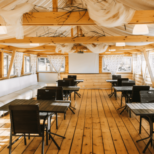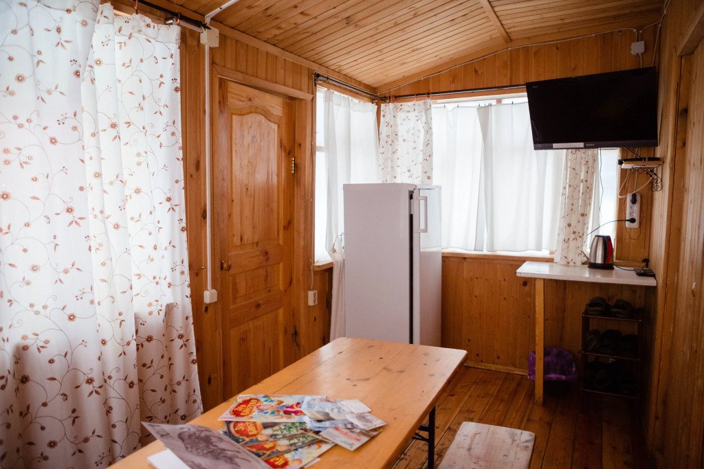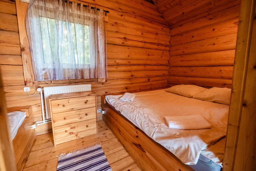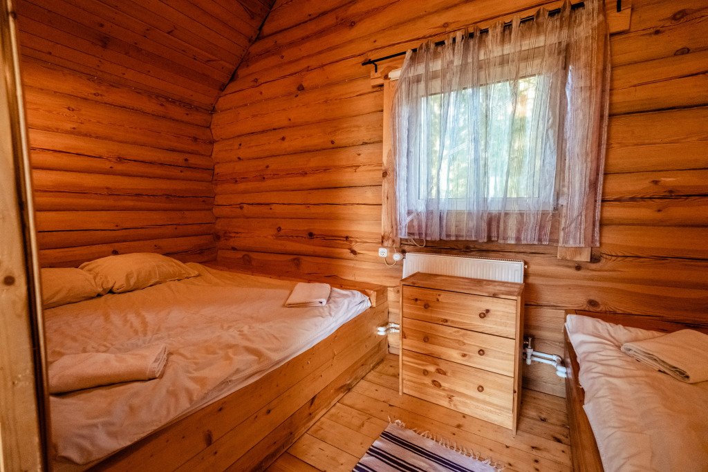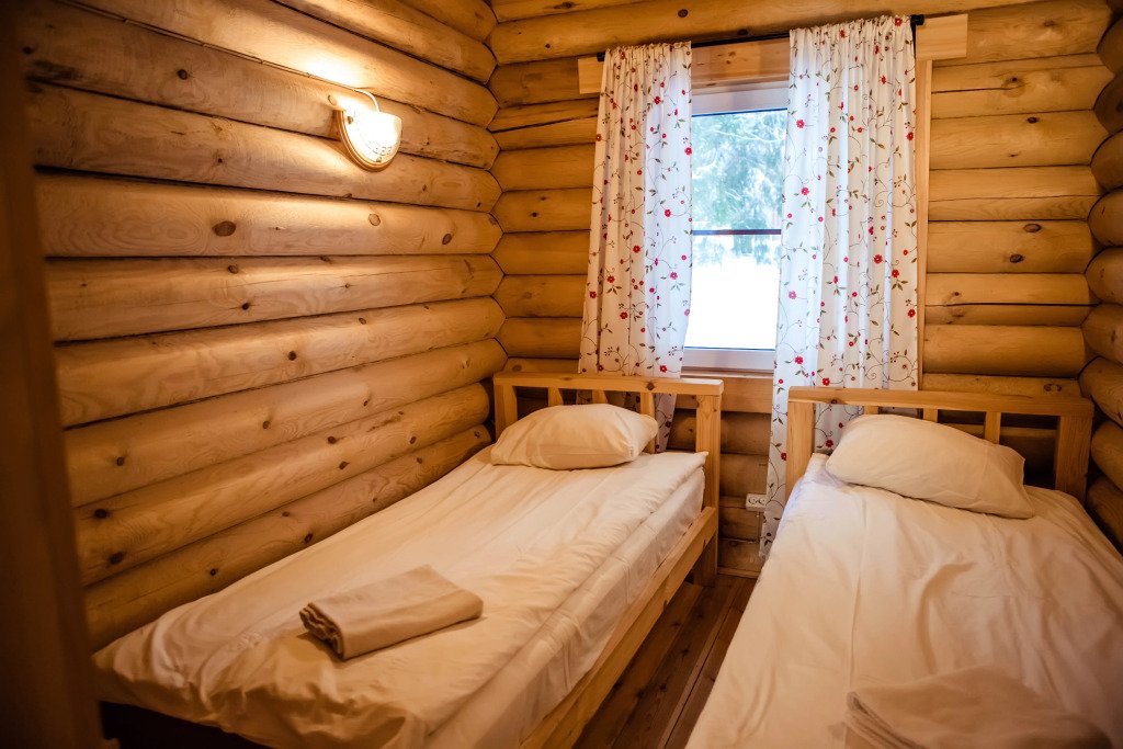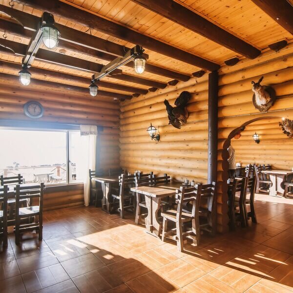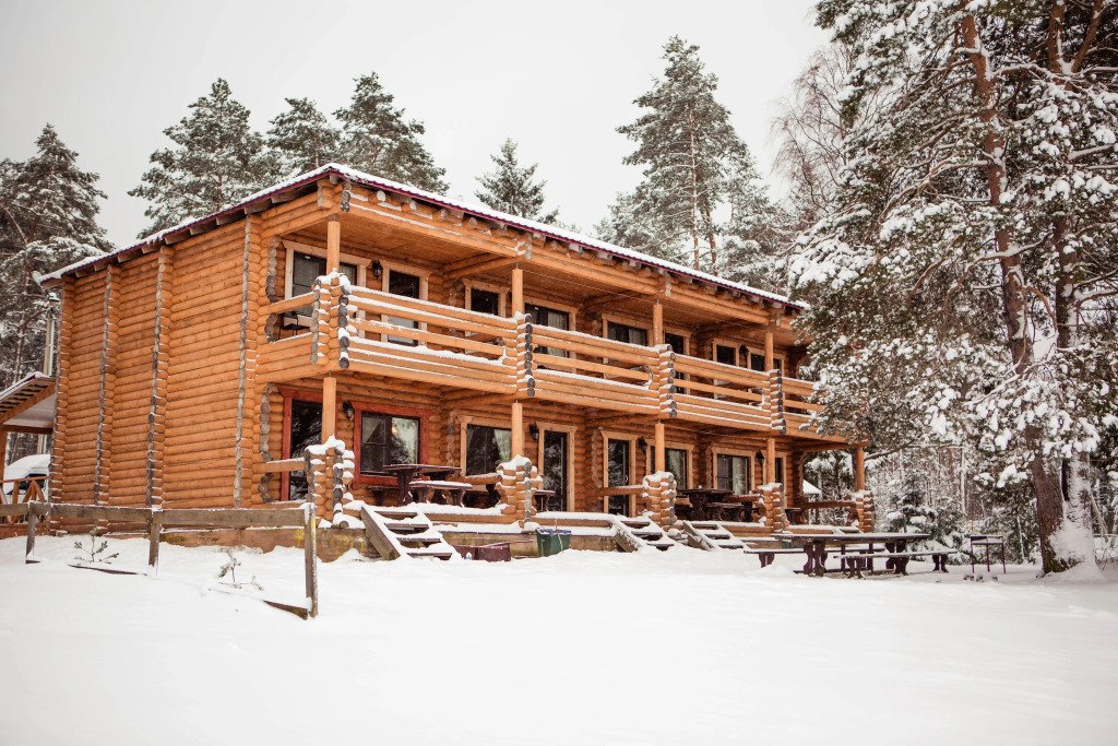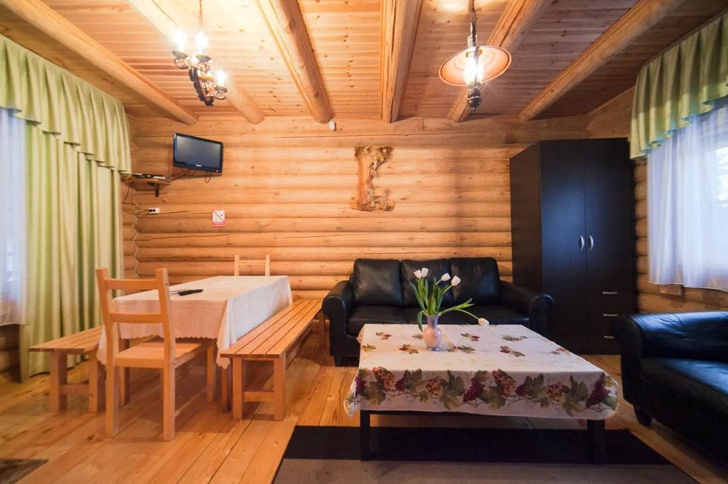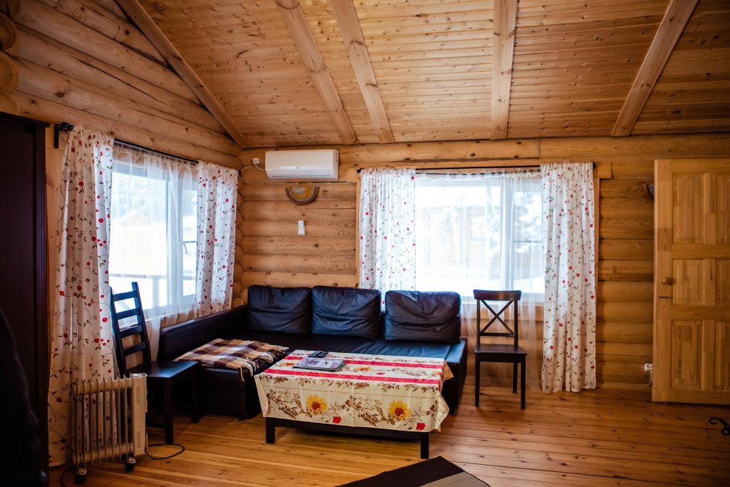 Для размещения гостей предложены деревянные коттеджи различной вместимости, гостиница, кемпинг.