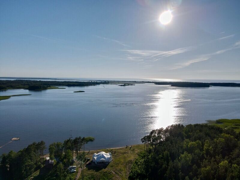 Территория комплекса «Тридевятое царство» расположена на берегу Чудского озера, недалеко от д. Залахтовье.