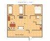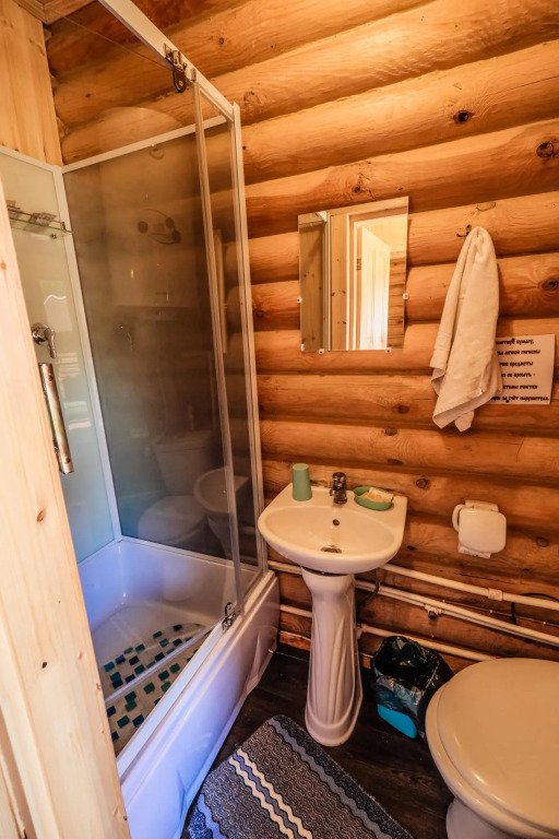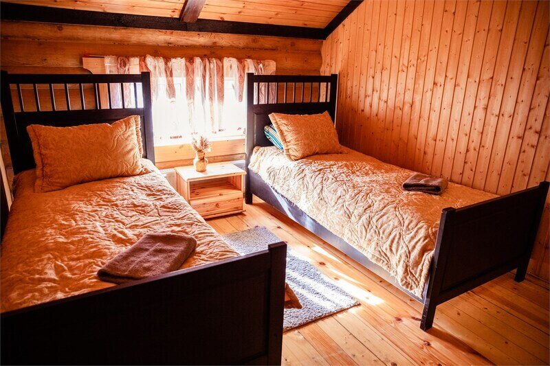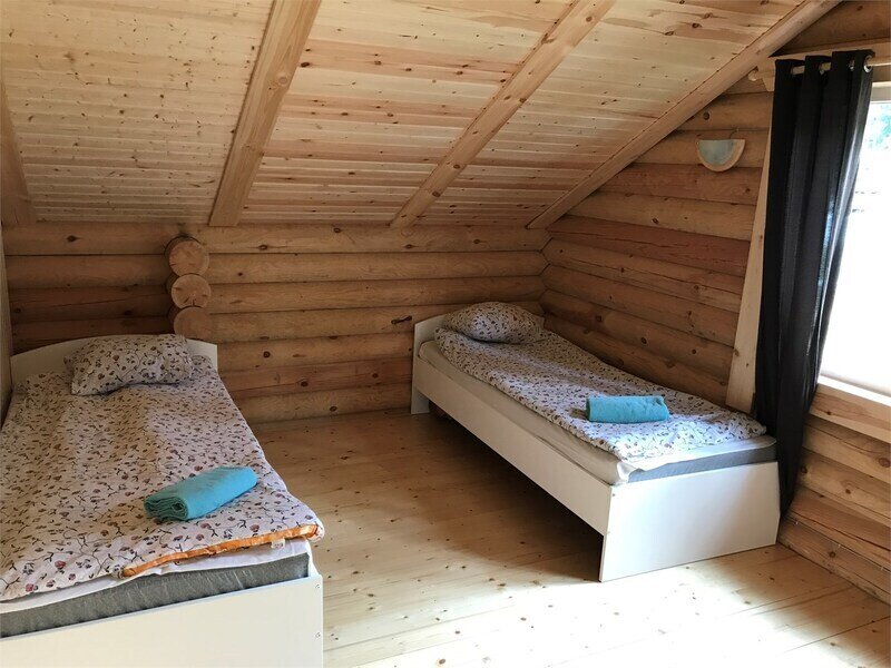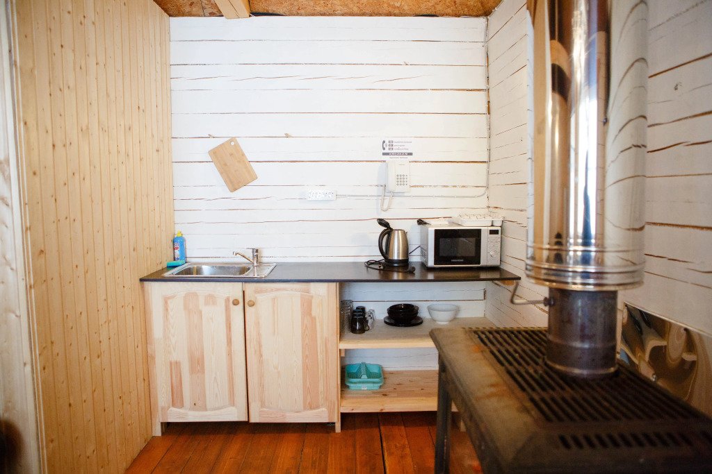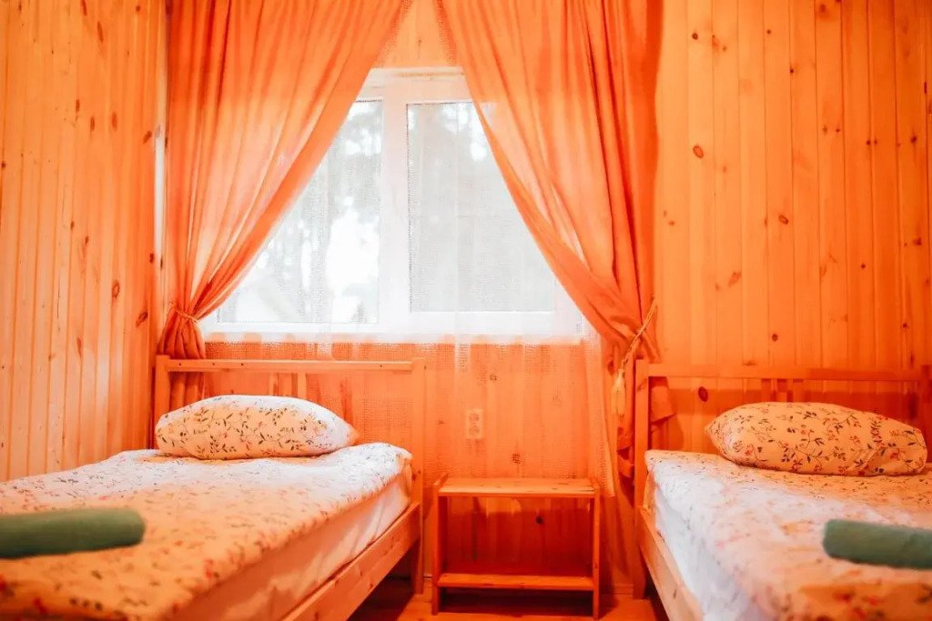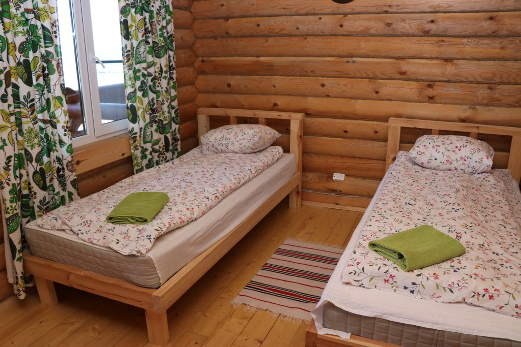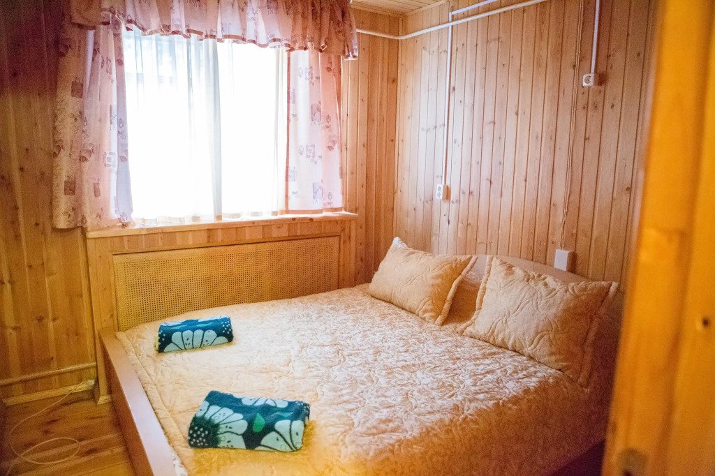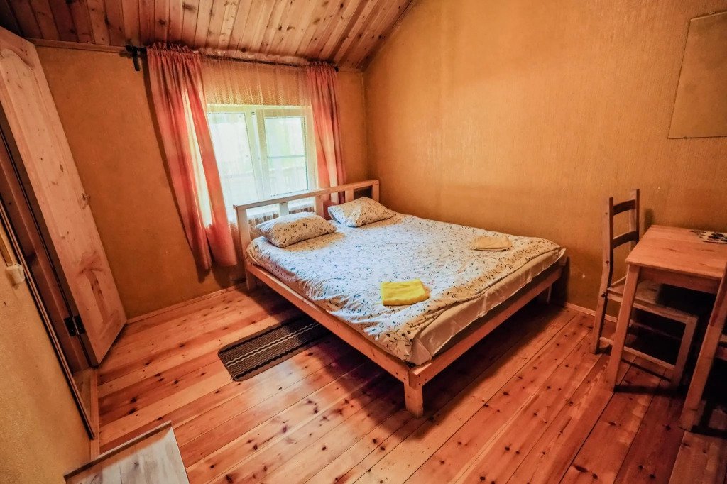 Часть дома с отдельным входом, общей площадью 20 кв.м., расположенная в средней части базы отдыха, подойдет для комфортного проживания двух человек. В доме расположены кухня с деревенской печью, спальня с двумя односпальными кроватями, сан. узел, веранда.