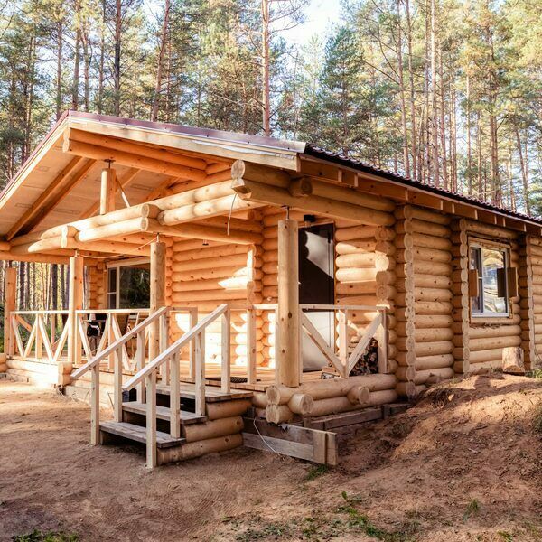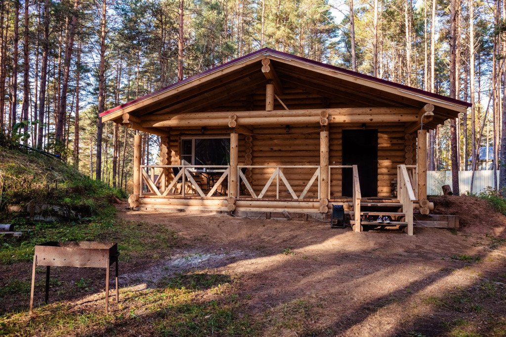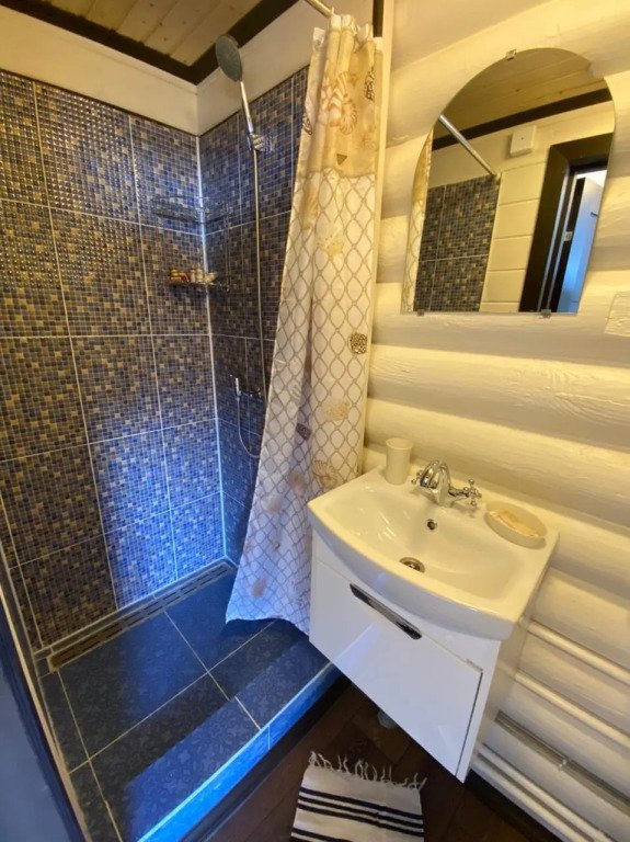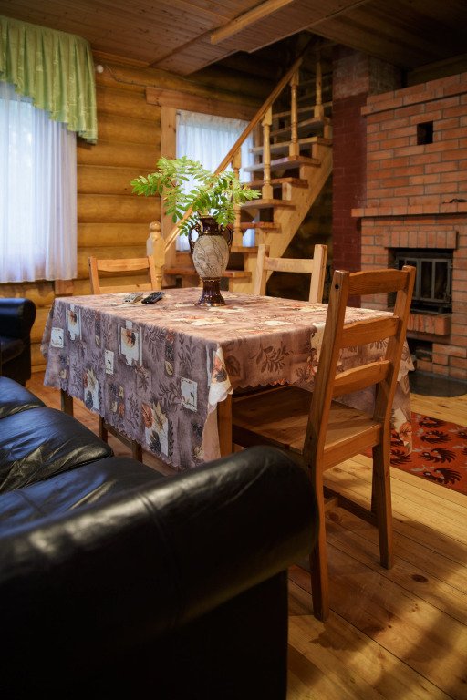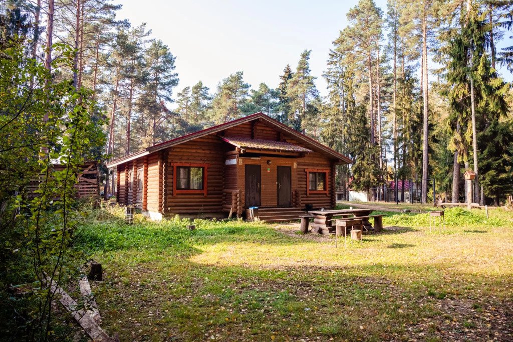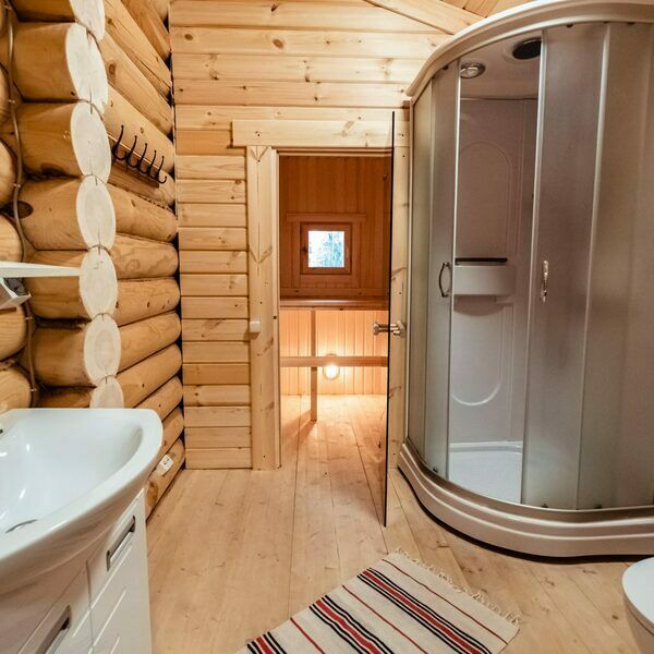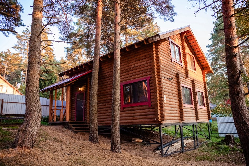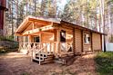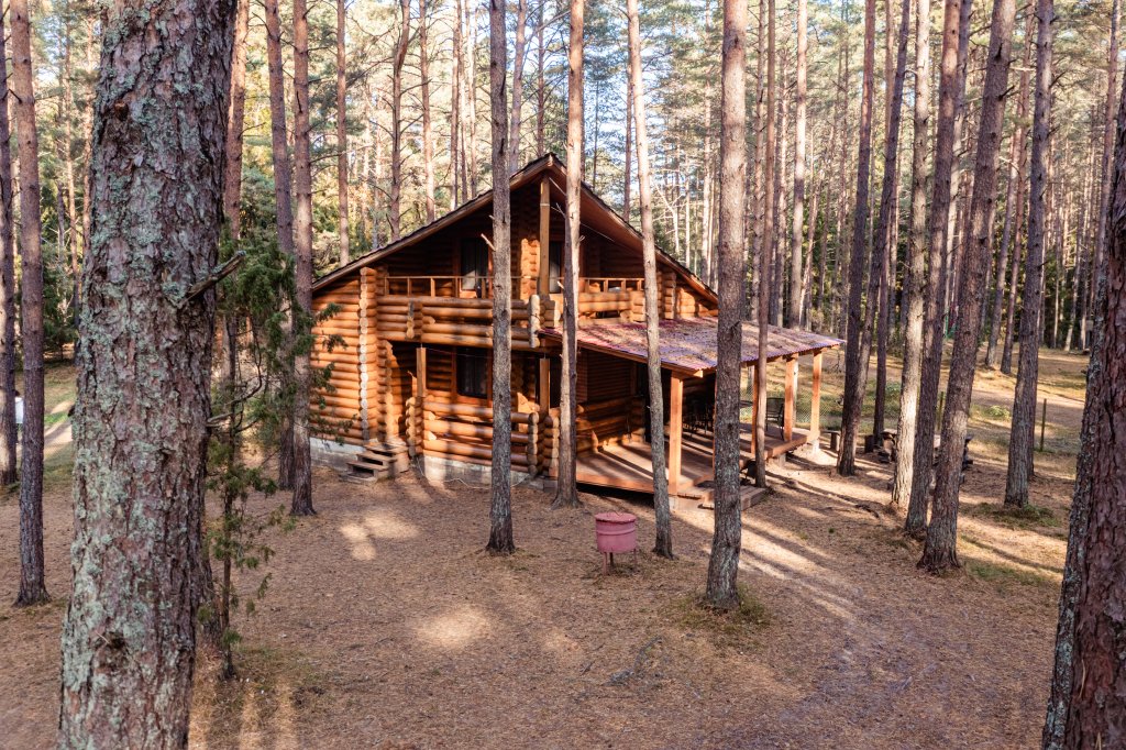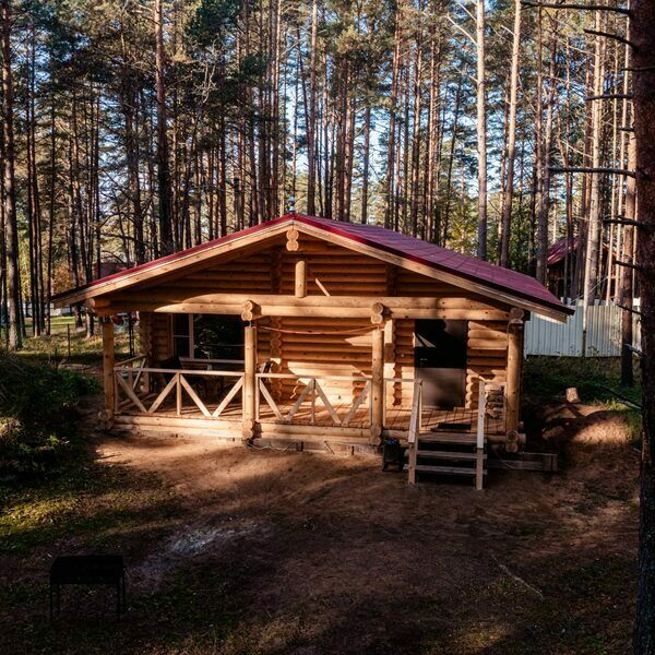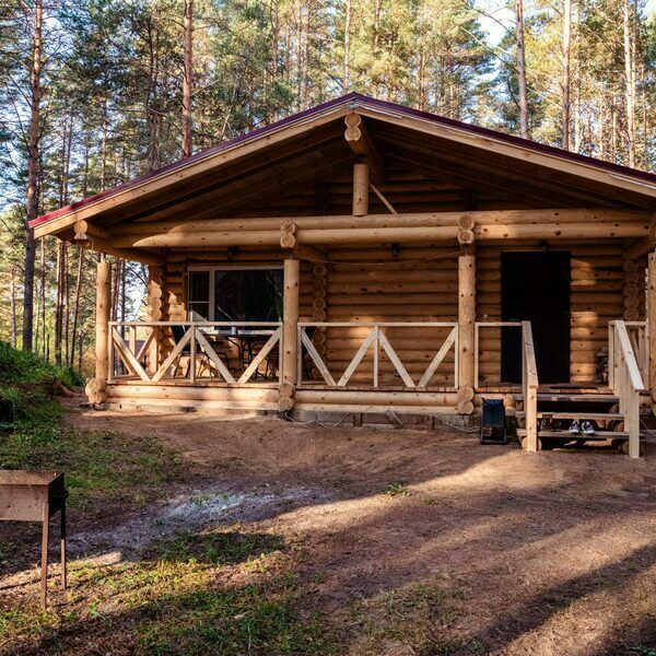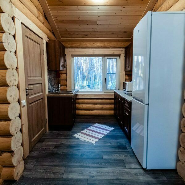 Деревянный коттедж, общей площадью 80 кв.м, расположенный в лесной зоне, подойдет для комфортного проживания семьи с детьми. В коттедже расположены гостиная с удобным диваном, обеденным столом и камином, кухонная зона, две спальни, сан. узел с душевой кабиной, сауна (3 часа в день), терраса с уличной мебелью.