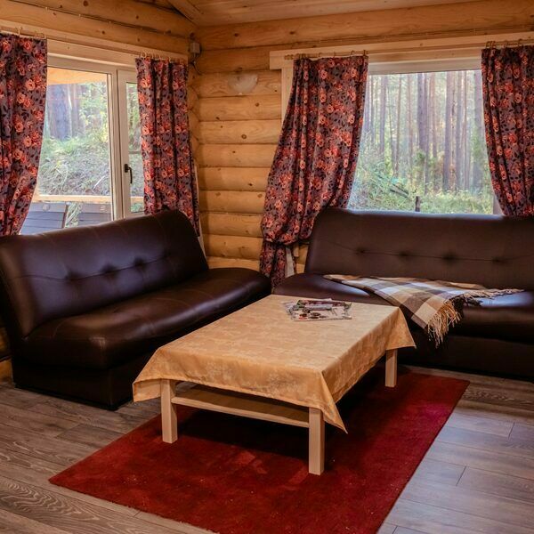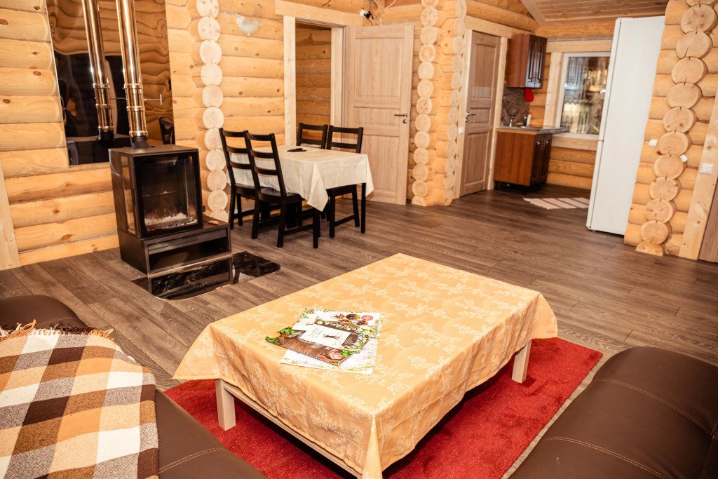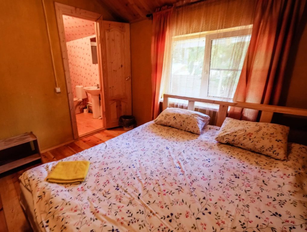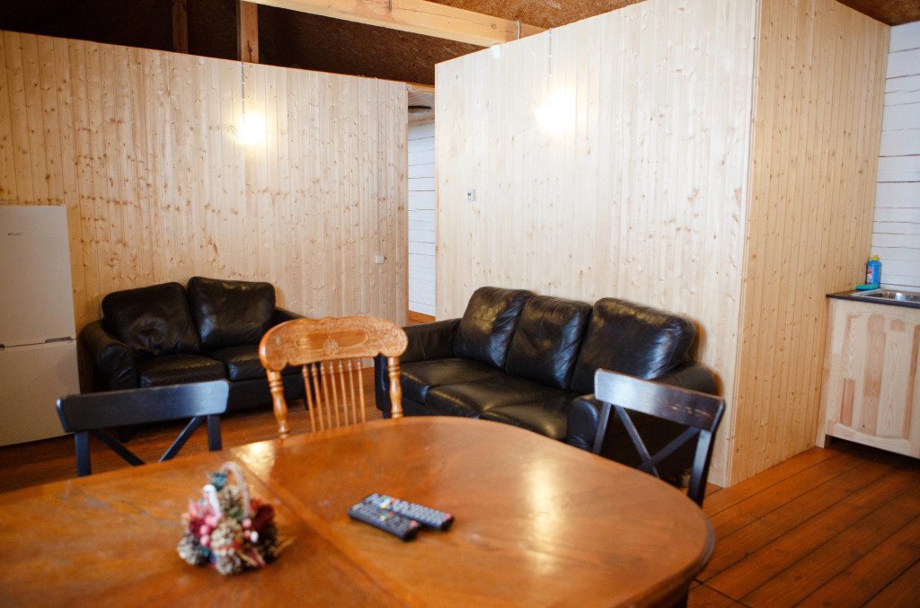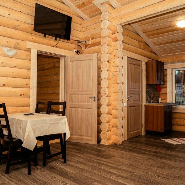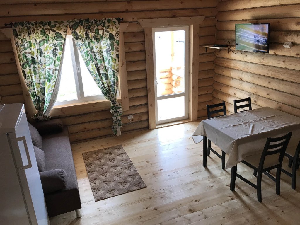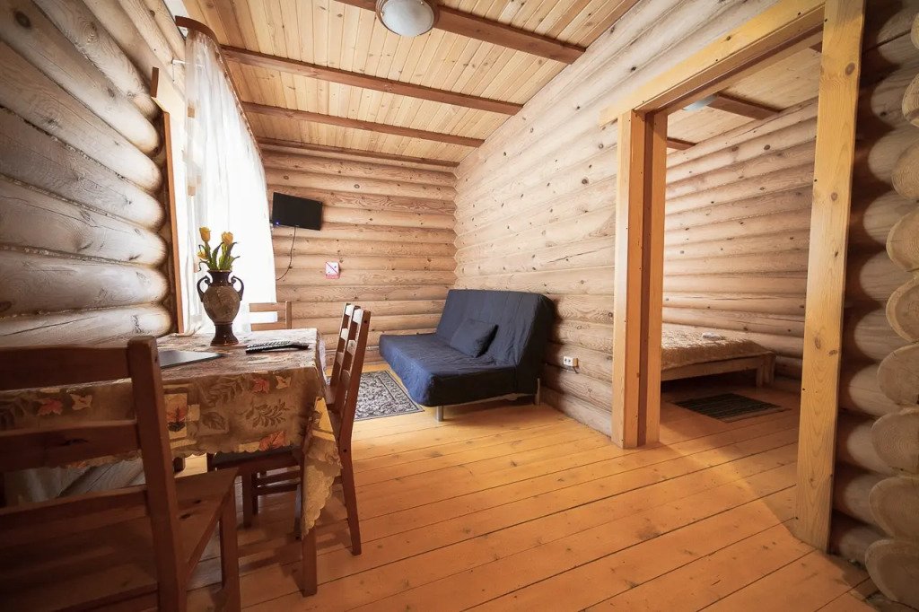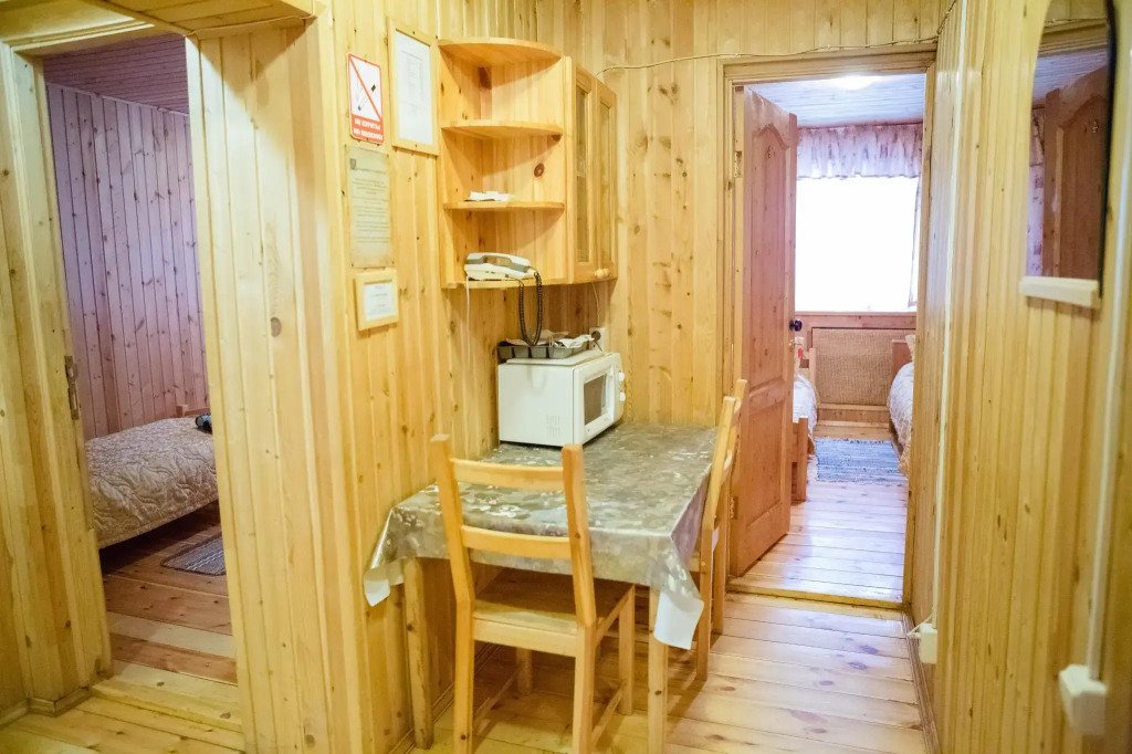 Часть деревянного коттеджа с отдельным входом, общей площадью 25 кв.м., подойдет для комфортного проживания семьи с детьми. В коттедже расположены гостиная с удобным разбирающимся диваном и обеденным столом, кухонная зона, спальня с двуспальной кроватью, сан. узел.
