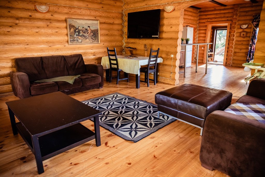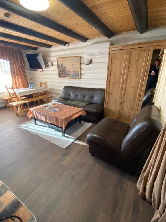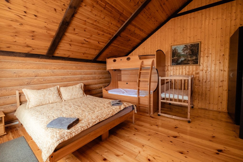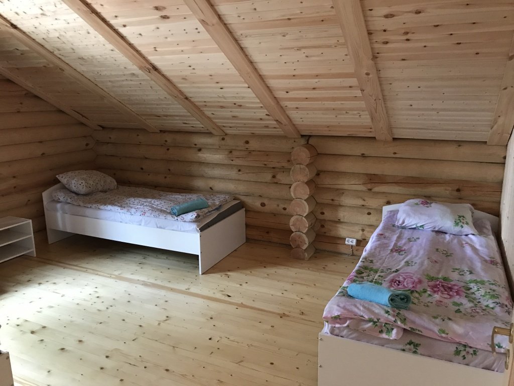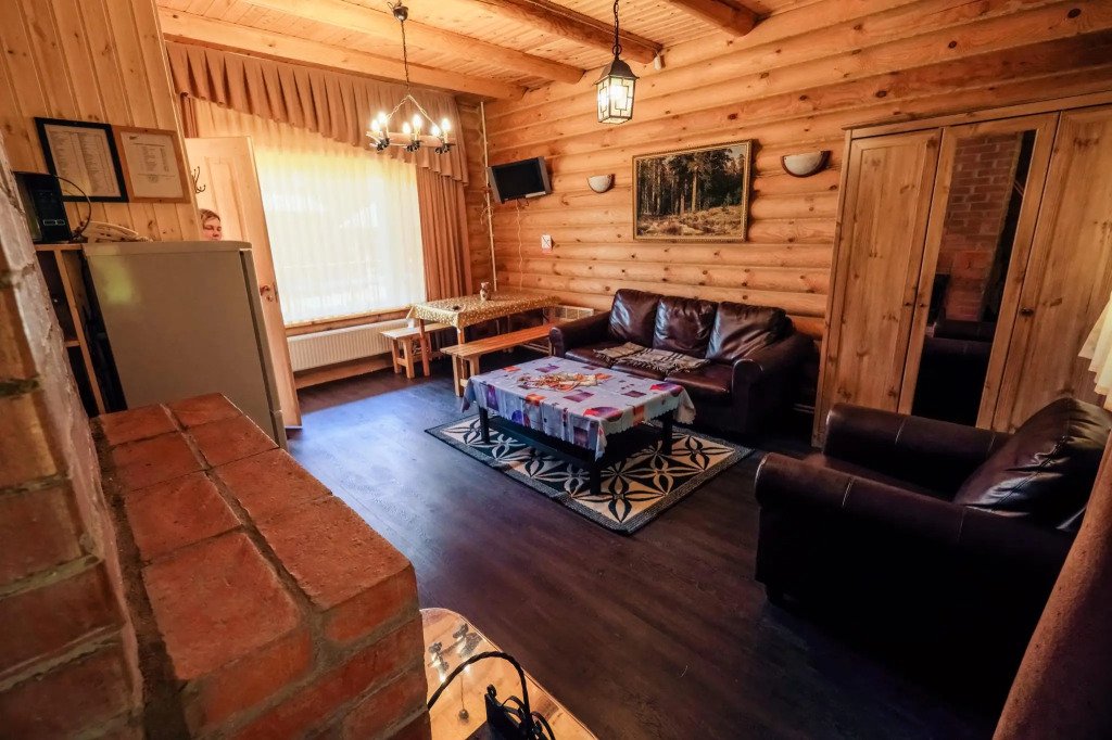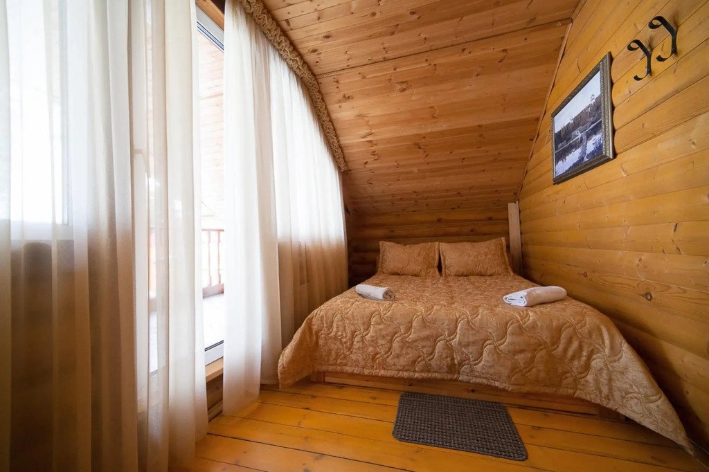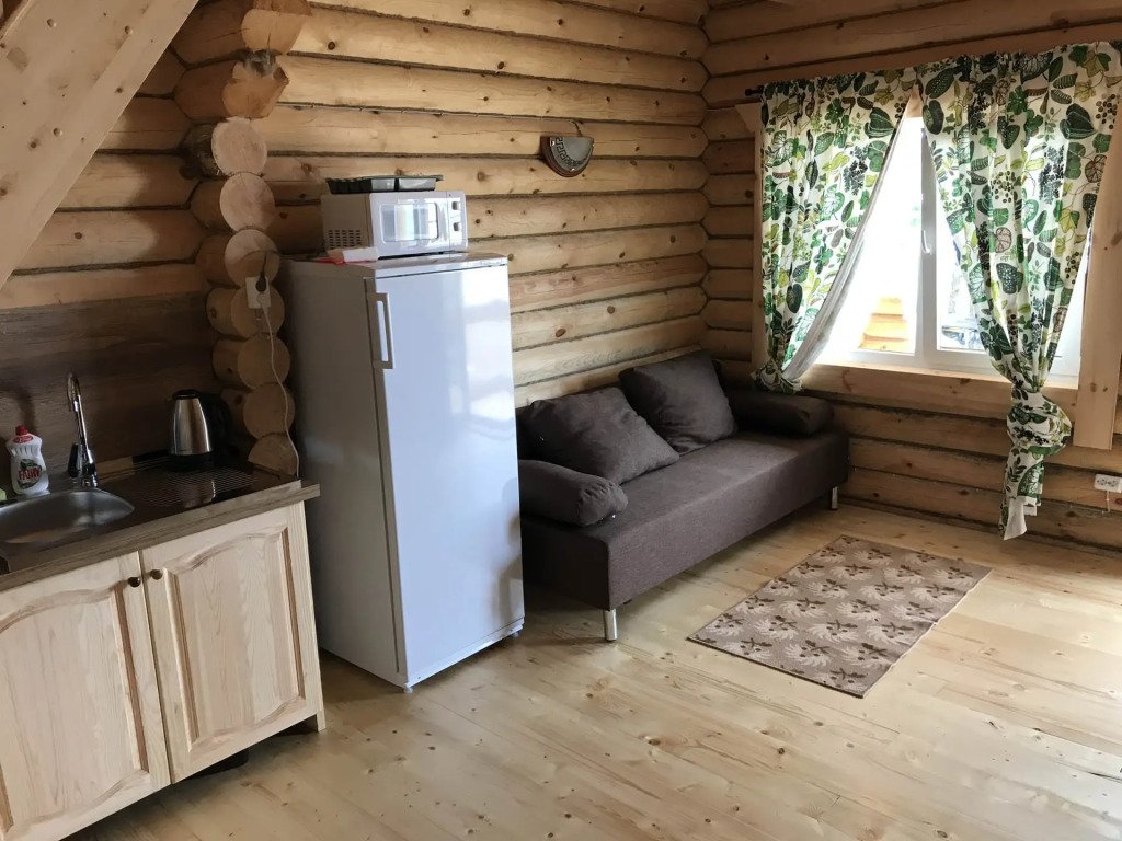 Часть деревянного коттеджа с отдельным входом, общей площадью 25 кв.м., подойдет для комфортного проживания семьи с детьми. В коттедже расположены гостиная с удобным разбирающимся диваном и обеденным столом, кухонная зона, спальня с двуспальной кроватью, сан. узел.