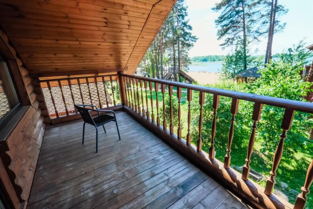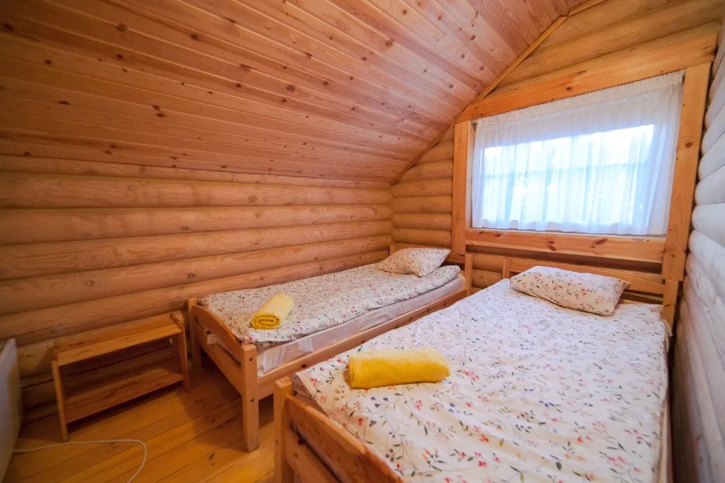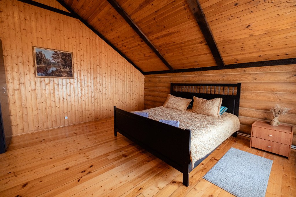 Первая линия. Прямой выход к озеру. Отдельный пляж. Часть деревянного коттеджа с отдельным входом, общей площадью 32 кв.м., подойдет для комфортного проживания семьи с детьми. В коттедже на 1 этаже расположены: гостиная с удобным разбирающимся диваном и обеденным столом, кухонная зона, сан. узел, терраса с уличной мебелью и выходом к озеру. На 2 этаже расположены две спальни: одна с двуспальной и одна с двумя односпальными кроватями, а также просторный балкон с уличной мебелью и прекрасным видом на озеро.