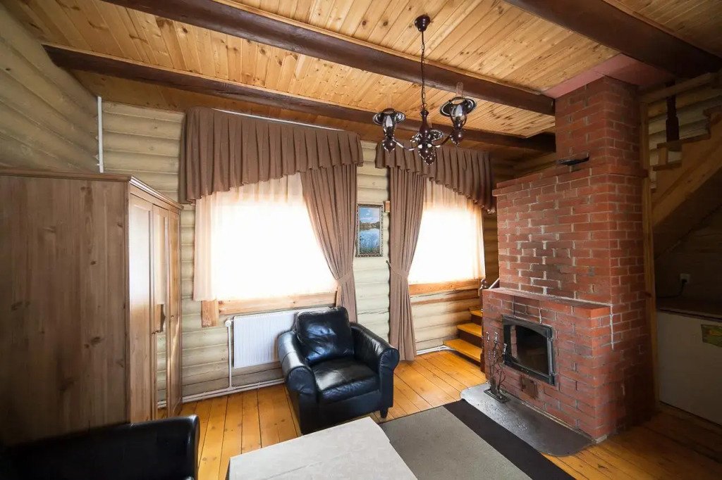 Деревянный двухэтажный коттедж, общей площадью 56 кв.м., расположенный на первой линии, подойдет для комфортного проживания большой семьи или небольшой компании. В коттедже на 1 этаже расположены гостиная с удобным разбирающимся диваном, журнальным столиком и камином, обеденный стол, кухонная зона, сан. узел, терраса с уличной мебелью.