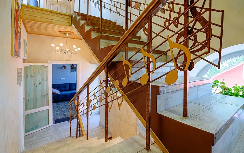 Атмосферу уюта и гармонии создают живописные картины и живая музыка (рояль) в помещении трапезной с мая по октябрь.