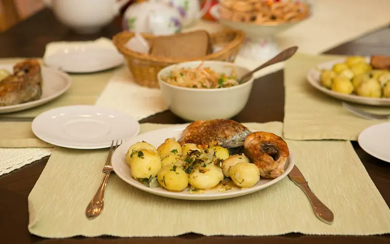 В трапезной всегда свежая домашняя еда, приготовленная специально для Вас из местных экологически чистых продуктов: пироги и блины, сырники и оладьи, борщи и уха, озёрная рыба, зелень с огорода, ягоды из леса, чай из трав с душистым мёдом местных пчёл.