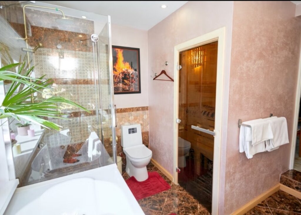 2 уровень-спальня,king size кровать,душевая,туалет,TV