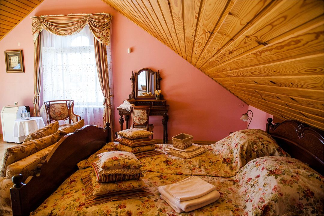 Проживание гостям устроено в комнатах-мансардах с отличными условиями и прекрасными видами из окна.
