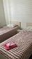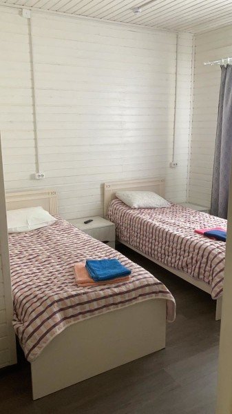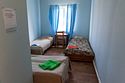 Номер из категории бюджетный . Совсем небольшой 7.5 м.кв. В номере есть две односпальные кровати , шкафчик и тумбочка. душ и санузел на этаже. Также есть кухня общего пользования с необходимым набором посуды.