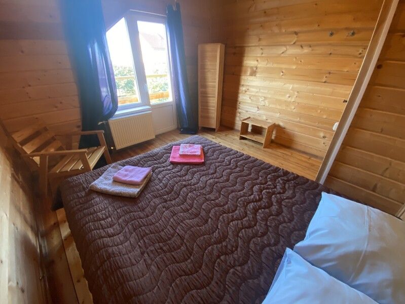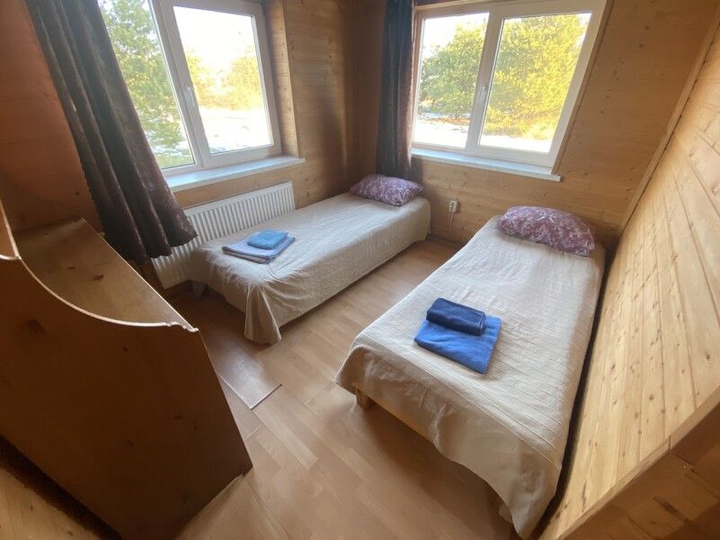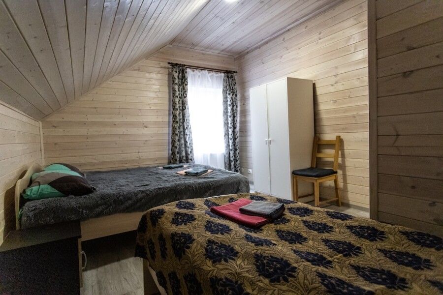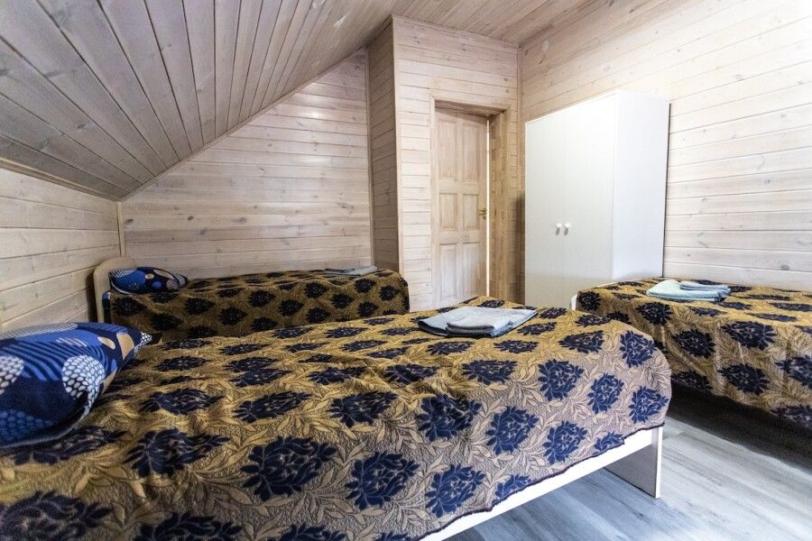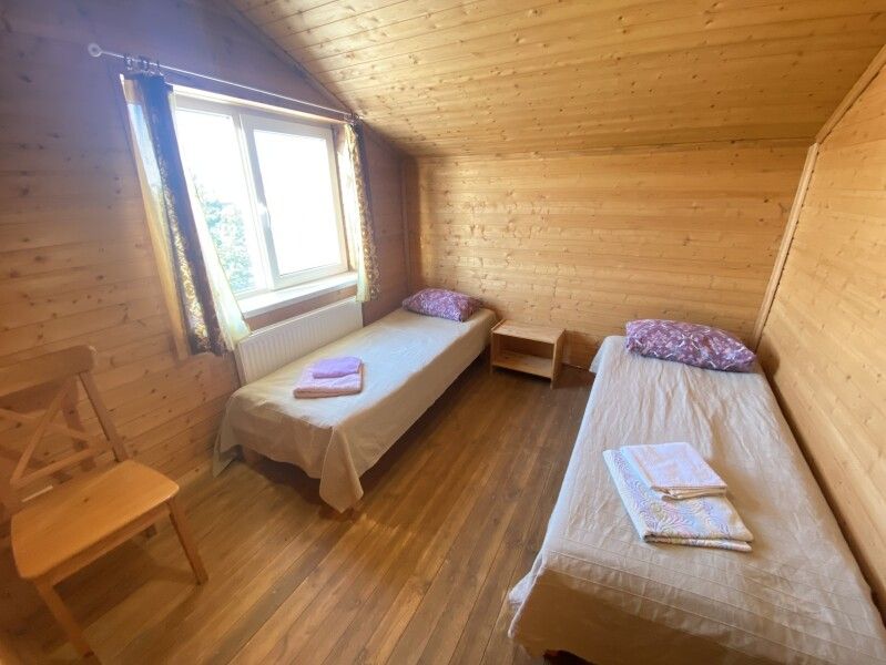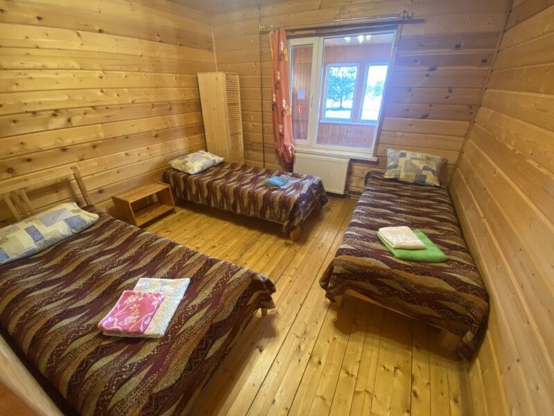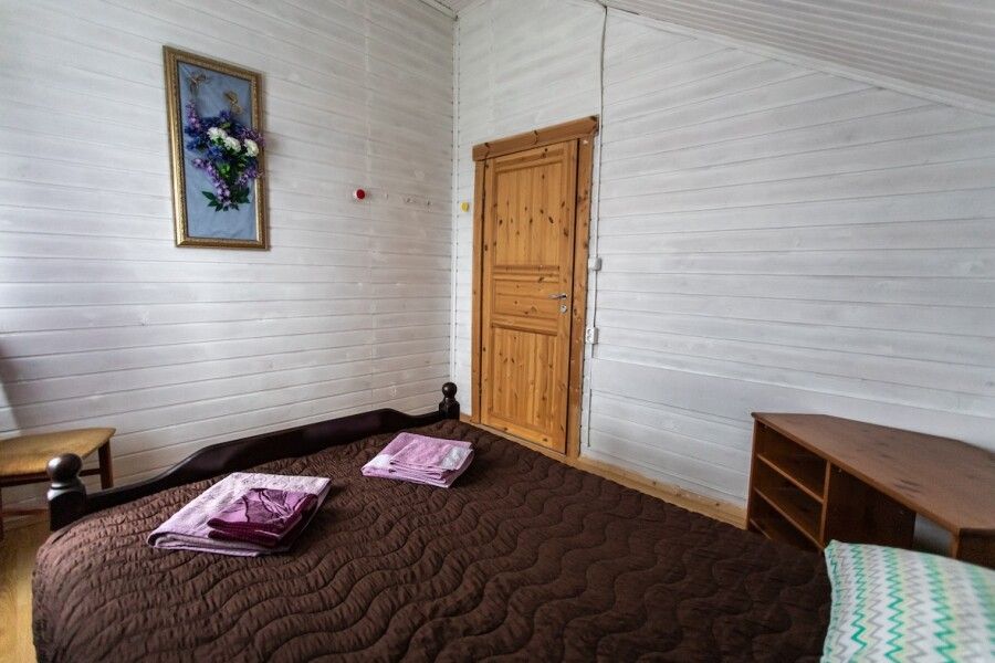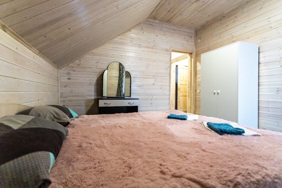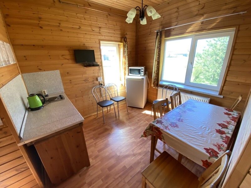 Уютный деревянный домик, два этажа, площадь 56кв.м. Есть все необходимое для семейного отдыха или для небольшой компании. Домик рассчитан на 7 человек. Небольшая кухня с необходимы набором посуды, холодильник, микроволновка, чайник, телевизор, 4 спальни, 2 санузла, душевая. На втором этаже застекленная лоджия с которой открывается прекрасный вид на озеро. Рядом с коттеджем есть своя мангальная зона. Домики такой категории расположены на третьей линии от Чудского озера ближе к речке Гдовка.