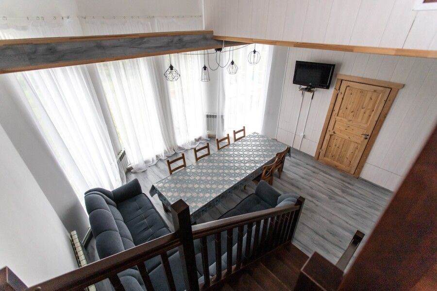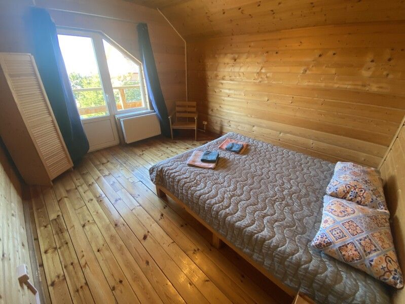 Уютный деревянный домик площадью 87 кв.м., два этажа. Рассчитан на 10 человек и при необходимости 2 дополнительных места на диване в обеденной зоне. В домике ест все необходимое для хорошего отдыха от городской суеты. Обеденная зона с диваном и телевизором, кухня, плита электрическая на 2 конфорки, чайник, холодильник, набор посуды. 4 спальни (2 из них с двухспальными кроватями), на каждом этаже санузел и душ совмещенные. Большой балкон откуда отрывается вид на Чудское озеро. Также есть закрытая терраса и своя мангальная зона. По расположению находится на второй линии от озера.
