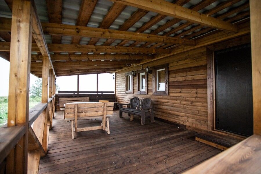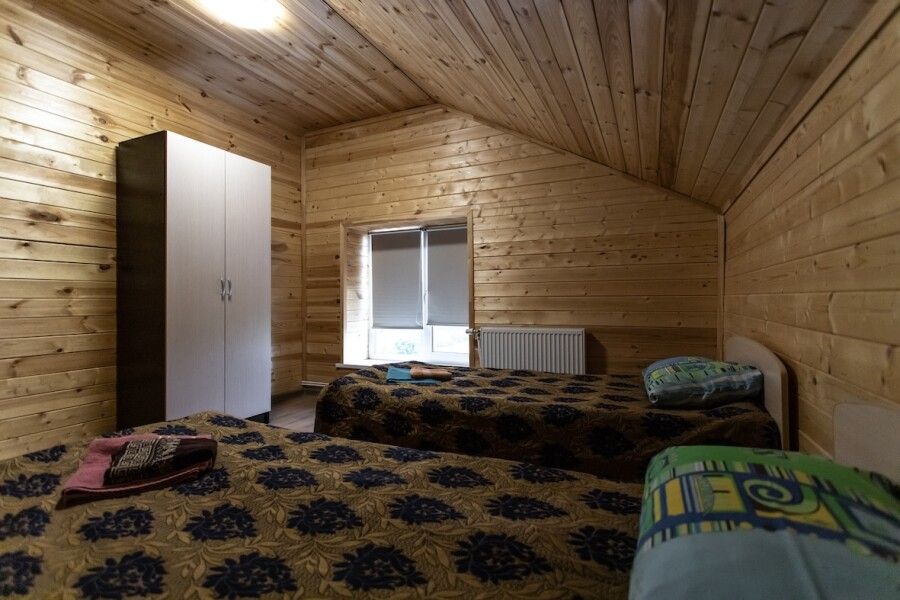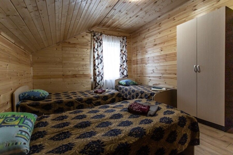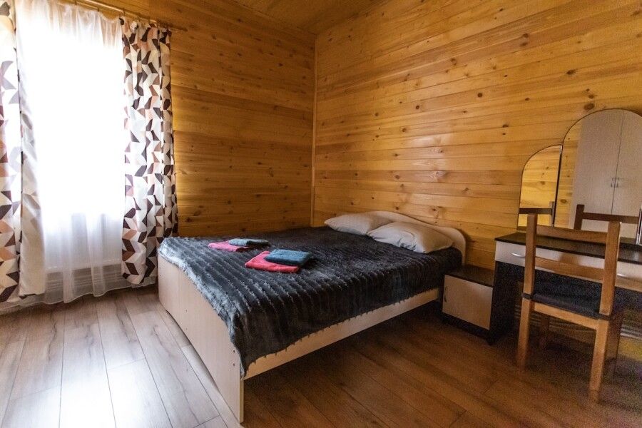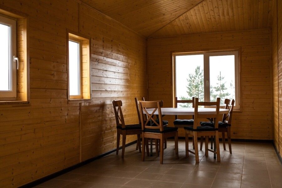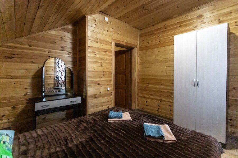 Для размещения доступны коттеджи на семь и двенадцать человек. Все дома построены из натурального дерева, укомплектованы качественной мебелью и техникой. Санузел оснащен душем, туалетом, раковиной, средствами гигиены и набором полотенец.