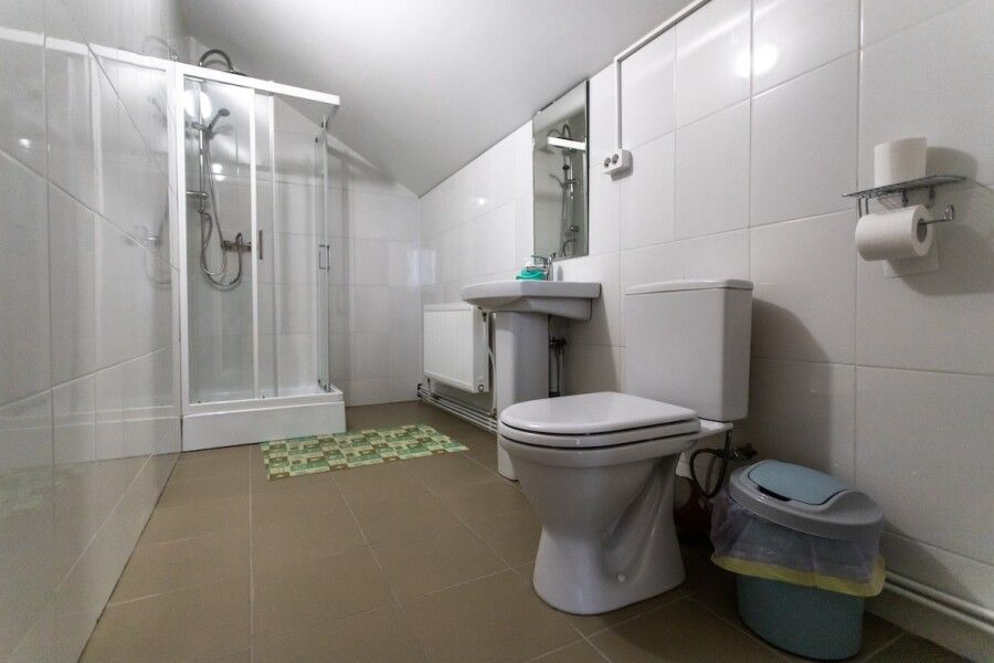 - Два санузла с раковиной, душевой кабиной и унитазом, обеспечивают удобство для всех гостей.
