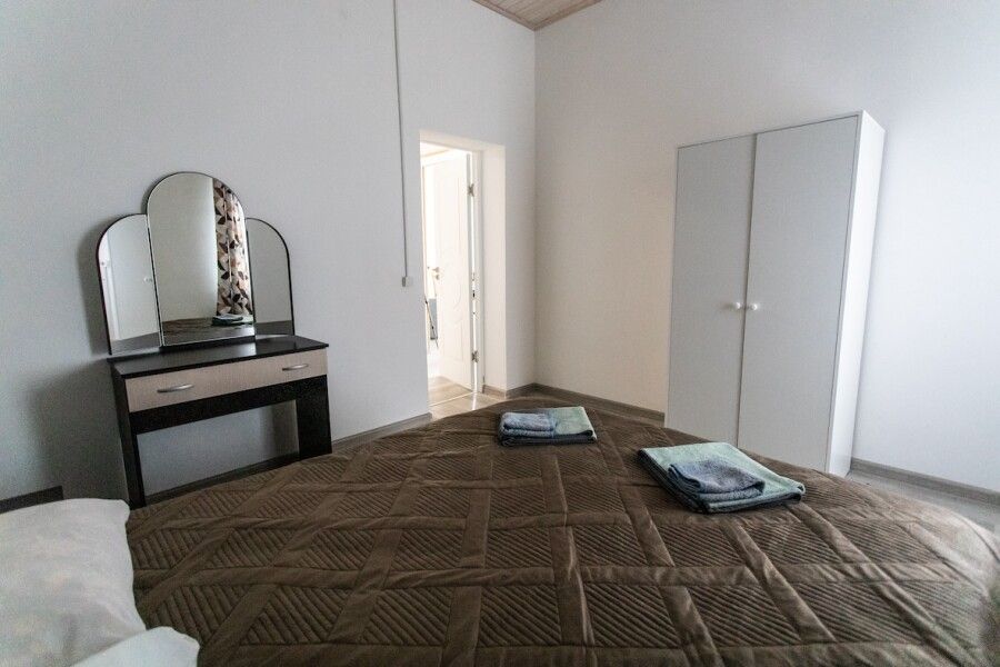- вторая спальня на втором этаже с двуспальной кроватью, двумя тумбочками, шкафом и трюмо;