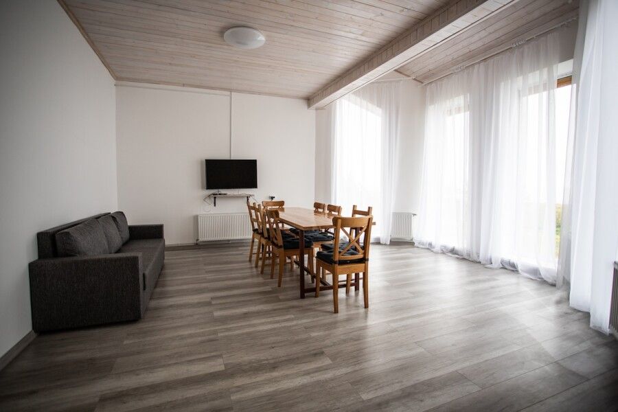 Прекрасная Вилла номер 5 — ваш идеальный уголок рая на берегу Чудского озера, всего в 40 метрах от воды. Это просторное жилье предлагает комфортное размещение для большой семьи или группы друзей.