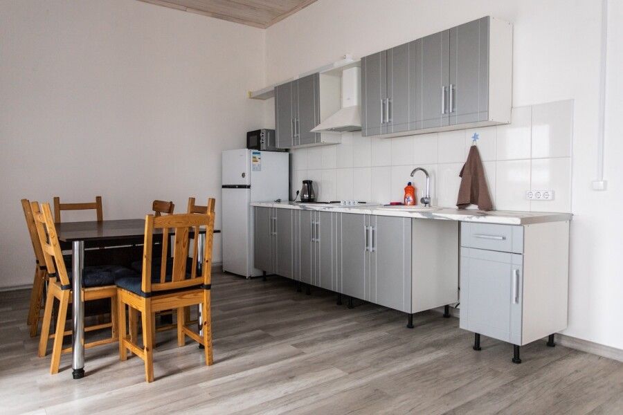 - Полностью оборудованная кухня с электрической варочной панелью, микроволновой печью, холодильником и чайником, где вы можете готовить вкусные блюда.