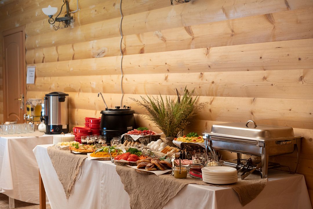 Зал ресторана вмещает в себя до 100 человек. Разместиться можно как в просторном зале в деревенском стиле, так и на уютной открытой террасе с видом на Пушкинский лес и пруды. Мы поможем определиться с рассадкой гостей, предложим различные варианты банкетного меню. Превосходный вкус подаваемых блюд не оставит Ваших гостей равнодушными. Добавьте сюда безупречное обслуживание, и успех Вашего мероприятия гарантирован!