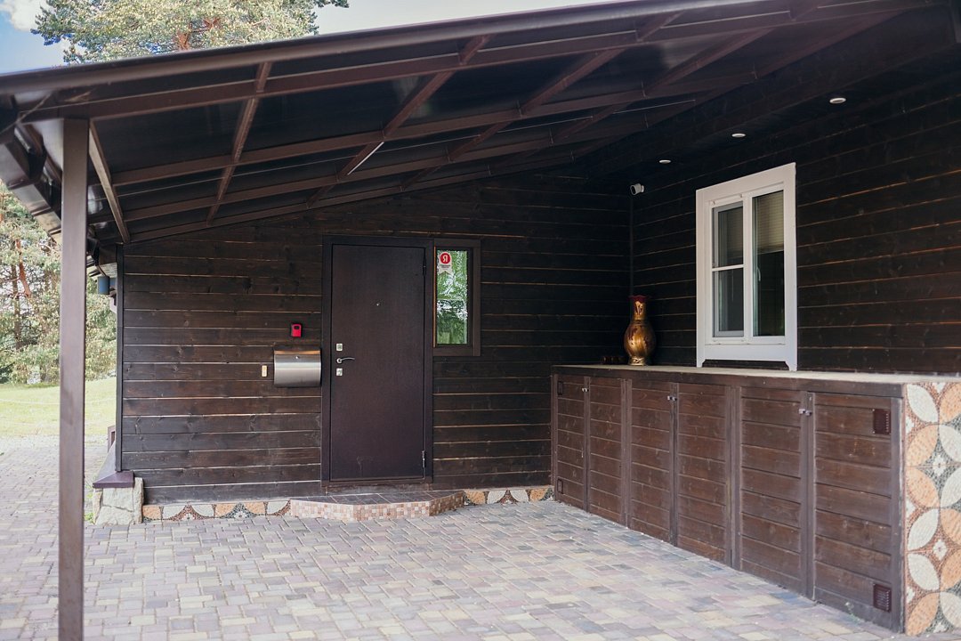 Организовано бесконтактное заселение. Есть баня на дровах. Полностью оборудованная крытая мангальная зона, детская площадка и склон для катания на санках (зимой). Территория в 60 соток, дом окружен зелёным газоном. Большая парковка. Пирс для купания и лежаки для загара. Проведение вечеринок и включать музыку на улице запрещено.