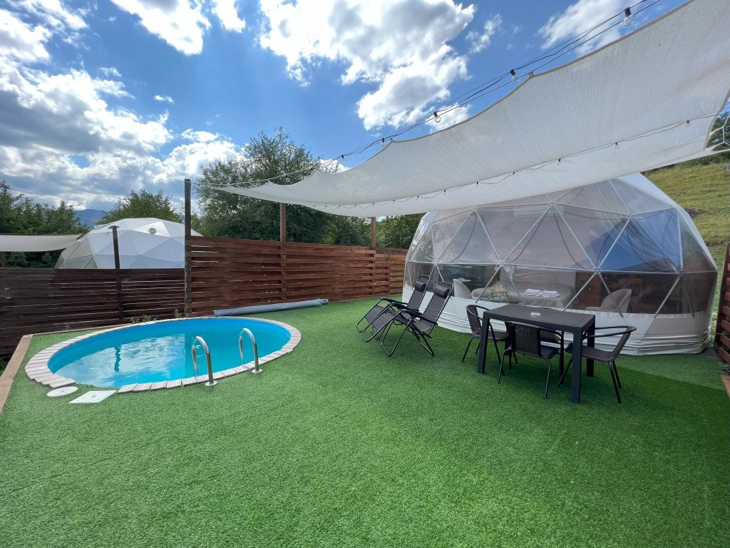 Уютный глэмпинг располагается в ст. Даховская Республика Адыгея, всего в 48 км от Майкопа. На территории есть все необходимые удобства и услуги. В каждой сфере есть удобная двуспальная кровать. Вы сможете быть всегда на связи со своими близкими. Отдохнуть от жаркого солнца, возможно расположившись под кондиционерами, установленными в сфере. Общая кухня с обеденной зоной на открытом воздухе – идеальное место для приготовления блюд.