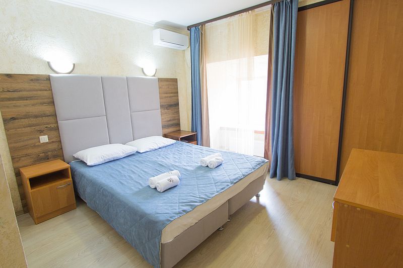 Уютный номер для 2 взрослых и 2 детей, категории стандарт. располагается номер на 2м-3м этажах Каждый номер имеет: душ/туалет, телевизор, холодильник, чайник, фен, сплит система. 1 двуспальная кровать и диван раскладной на 2 спальных места. Предоставляются душевые, туалетные, постельные принадлежности.