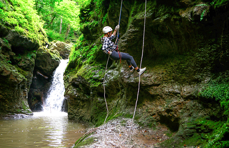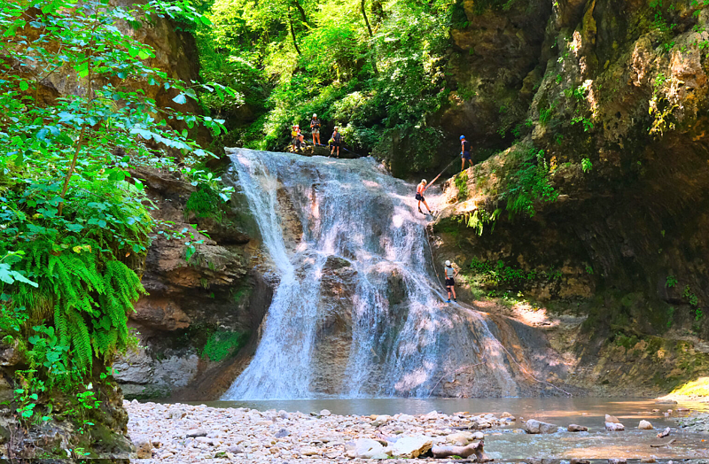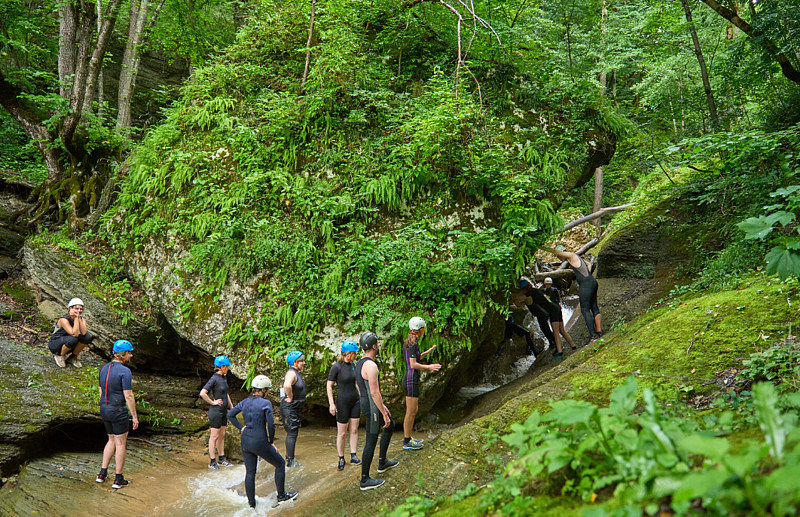 День 3. Каньонинг по ущелью р. Мешоко, Чёрный шум, Хаджохская Теснина, скалолазание.